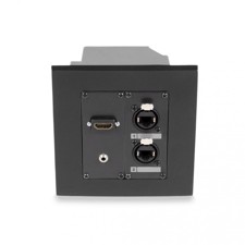 CASY052 fås i et 2-plads-chassis, der muliggør implementering af indbygget montering af en brugerdefineret konfiguration ved hjælp af de loddefrie lyd-, video-, data- og strømmoduler fra CASY. r.