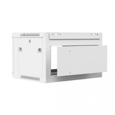 WPR406 er en professionel 6 unit, 19" vægmonteringsrack af metal i overensstemmelse med ANSI/EIA RS-310D, DIN41491 og IEC 60297 standarderne. Den massive konstruktion består en koldvalset, 1,5 mm tyk stålramme og 1,2 mm tykke plader. Den hærdede, røggrå glasdør er udstyret med en nøglelås. De aftagelige sider gør det let at installere nyt udstyr i racken.