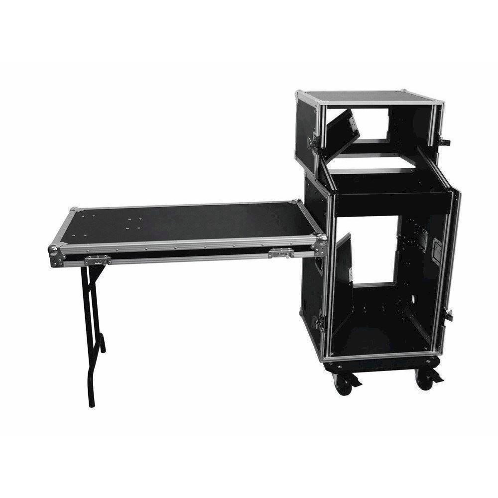 Her er du: Disconetto » Flightcase » 19'' Rack » Combo/ mixer Rack Combo rack med sidebord. Professionel. 16 + 8 + 4 unit På lager På lager, 3-5 hverdage Bedømmelse for Combo rack med sidebord. Professionel. 16 + 8 + 4 unitBedømmelse: 1 ud af 5 baseret på 1 stemmer 6.149,00DKK ved 1 stk. Vis uden moms Trustpilot Professional stage case with integrated deskDenne vare kan KUN sendes kun med fragtmand Stage case with integrated deskProfessional solution for a complete DJ setput; this heavy-duty case accommodates your PA, a double CD player and a 483 mm mixer (19") and two turntables and can be assembled and disassembled without much effortSlidable top part with 4 U mounting facility for e.g. control units of double CD players or lighting units and upward tilted profile rails with 8 U for top-operated units e.g. mixersBottom part with 16 U mounting facility for e.g. CD mechanisms, amplifiers, effect unitsRemovable front cover with folding table leg fits two turntablesRemovable rear coversCable outlets on the sides in the bottom partHigh-quality workmanship with 9 mm plywood multilayered glued, black laminatedAluminum profile framesThree-leg, large steel ball corners4 castors (100 mm), 2 of which with locking brakesHinged, chrome-plated case handlesButterfly locks with locking functionDelivery includes mounting screwsDeskfunction: Yes Outer dimensions (L x W x H):575 x 560 x 1215 mmWeight:39 kgMaximum load:100 kgHeight:121,5 cmDepths:56 cmWidth:57,5 cm Varenr.: E-32000200