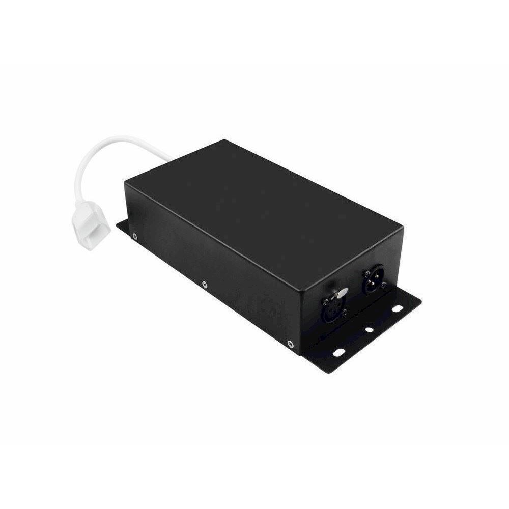 Her er du: Disconetto » LYS » Special lys » Neon Flex LED Controller PRO with DMX for LED Neon Flex 230V Slim RGB På lager På lager, 3-5 hverdage Bedømmelse for Controller PRO with DMX for LED Neon Flex 230V Slim RGBProduktet er endnu ikke bedømt 719,00DKK ved 1 stk. Vis uden moms Trustpilot Controller with DMX interface for the RGB LED neon tube (item 50499801) Controller with DMX interface for the RGB LED neon tube (item 50499801)Compact controller for the slim LED neon tube (item 50499801) via DMX3 separate control channels for individual color mixing of the red, green and blue LEDsMaximum load 6 ABuilt-in programs enable stand-alone operation (individual color mix, color change, color fade, running speed)Sound-control via built-in microphone with adjustable microphone sensitivity6 DMX channels (red, green, blue, dimmer, strobe, auto mode/sound control)DMX input and output via 3-pin XLR connectors4-pin cable for connecting the LED neon tubeRugged black metal housing, suitable for wall mountingDelivery incl. 1 pc RGB Power Contact Pin (50499826) and 1 pc Heat Shrink Tube (50499822) Power supply:230 V AC, 50 HzOutput current:max. 2 A per channel (6 A total)DMX connection:3-pin XLRDimensions (L x W x H):225 x 100 x 50 mmIP classification:IP20Weight:1,1 kgHeight:5 cmDepths:10 cmWidth:22,5 cm Varenr.: E-50499811 Vi anbefaler Eurolite DMX LED EASY Operator 4x4, 4 LED Spots op til 4 Kanaler (RGBW) DKK 669,00 LED Neon Flex 230V Slim RGB 100cm DKK 339,00 LED Neon Flex 230V Slim RGB Power Contact Pin DKK 23,00 LED Neon Flex 230V Slim Heat Shrink Tube DKK 18,00