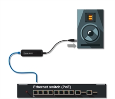 Til tilslutning af analoge audio line-niveau enheder (f.eks. aktive højttalere) til et Dante® audio-netværk