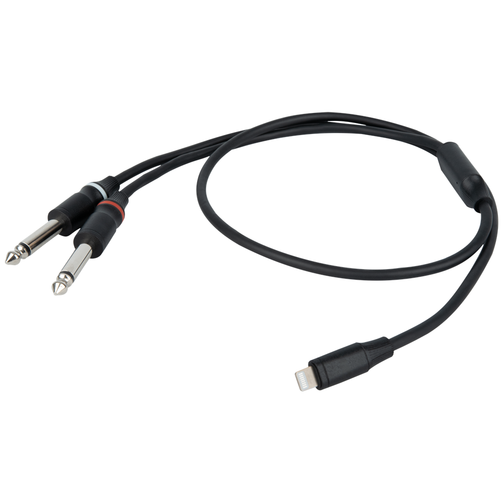 DAP FL101 - Lightning til 2 Mono Jack L/R-kabel er et sort lydkabel, der er lavet til iPhone/iPad/iPod. Med to nikkelbelagte mono 6,3-mm jackstik, forbinder det enhver Lightning-enhed til jack-indgange. Det er meget fleksibelt, hvilket gør det bekvemt og let at bruge. DAP FL101 er tilgængelig i forskellige længder.