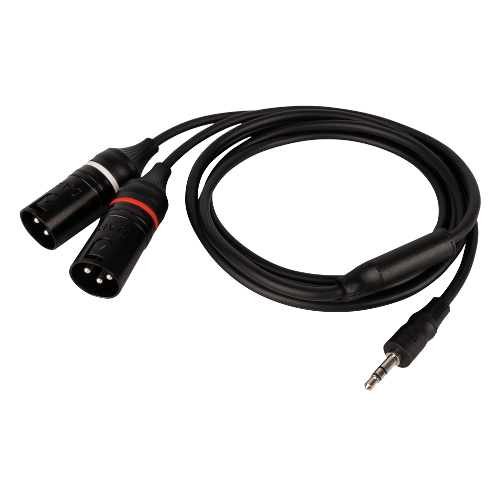 The DAP FL120 is a professional-grade audio cable with a male, stereo mini-jack and two nickel-plated male XLR 3P connectors, perfect for seamless audio connections. The mini-jack features a specially formed, recessed flanged collar that allows you to fully plug it into your phone while it is still in its protective cover. It is ideal for use with computers, laptops, tablets, and mobile devices. Designed for convenience, the highly flexible FL120 is easy to use. It is available in different lengths to cater for different set-up requirements.