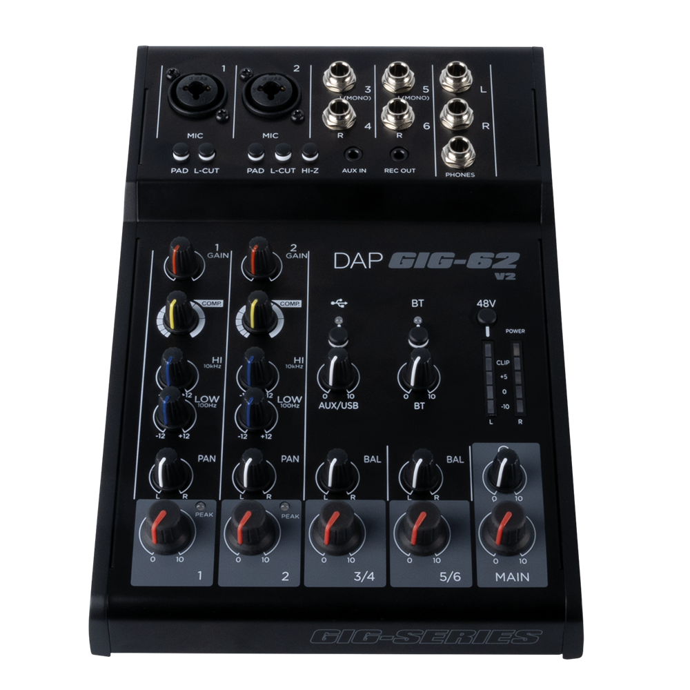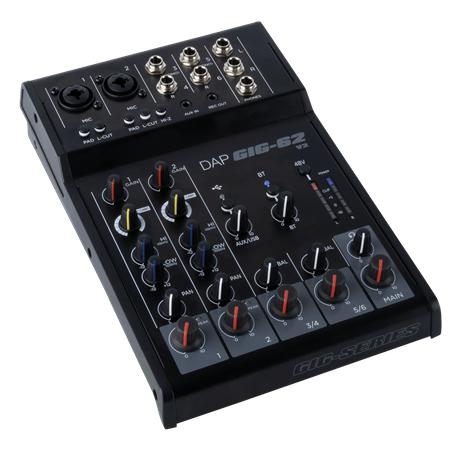 The DAP GIG-62 V2 is a versatile 6-channel analogue mixing console designed for live sound applications, small performances, presentations, and home recording setups. Despite its compact footprint, it offers a wide range of professional features that make it a reliable companion for musicians, sound engineers, and content creators.