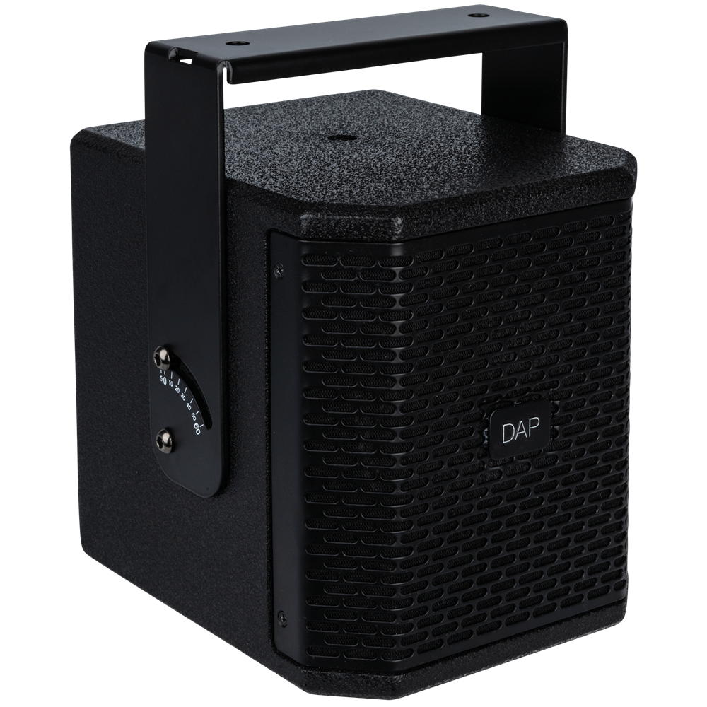 The DAP Hanging Bracket for Xi-5C is a dedicated mounting solution for the Xi-5C installation speaker, designed for secure and precise positioning. Constructed from durable metal, it ensures long-term reliability in fixed installations. The bracket features a printed angle scale, allowing installers to set and repeat the exact tilt for optimal coverage. Finished in black, it blends seamlessly with the Xi-5C for a discreet, professional look.