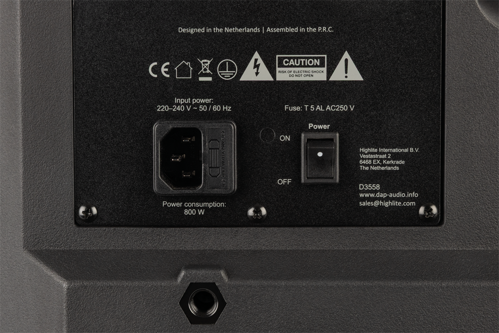 1000 W RMS, 2000 W peak, max SPL of 128 dB at 1 m