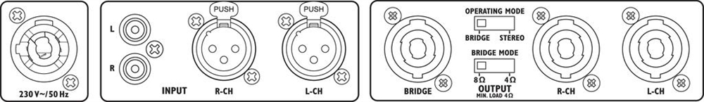 - LEDs for indicating power, signal, bridge, overload (clip), overheating and protect