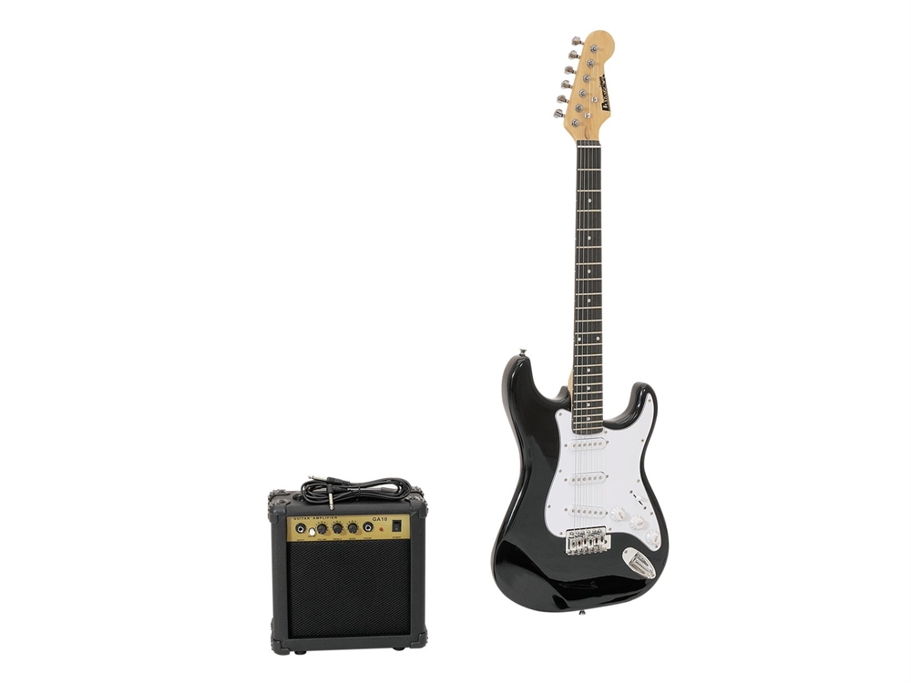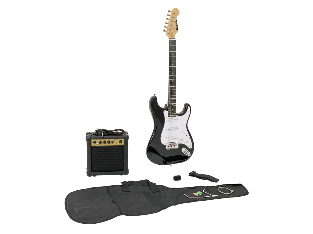 Her er du: Disconetto » brand » Dimavery DIMAVERY EGS-1 Electric guitar set, black På lager På lager, 3-5 hverdage Bedømmelse for DIMAVERY EGS-1 Electric guitar set, blackProduktet er endnu ikke bedømt Før 1.459,001.299,00DKK ved 1 stk. Vis uden moms Trustpilot E-guitar set for beginners DIMAVERY EGS-1 Electric guitar set, black E-guitar set for beginnersFor application areas such as: Christmas; Gift ideaPackage contents1 x amplifier, 1 x instrument, 1 x tuner, 1 x battery, 3 x plectrum, 1 x strap, 1 x tremolo bar, 2 x hex key, 1 x user manual, 1 x bag Weight:5,85 kgInstrumentPickup:3 x single coilVersion:Right hand versionNeck:22 fretsBody:4/4 STformLimewoodPickguard:WhiteScale length:648 mmNumber of strings:6Fader:1 x volume, 2 x soundPU switch:1 x 5-way switchBridge:ST-style tremoloHardware:Chromium-platedColor:Black, high-gloss, paintedAmplifierPower connection:Fixed power supply cord with safety plugConnections:Input: mono via 1 x 6.3 mm plug (unbal.)Output: headphones via 1 x 6.3 mm jack socket (stereo) mounting versionTunerBattery:1 x Button cell 3.0 V CR2032 lithium manganese included Varenr.: E-26210106 Vi anbefaler DIMAVERY SGKT-25 Clip Tuner DKK 69,00