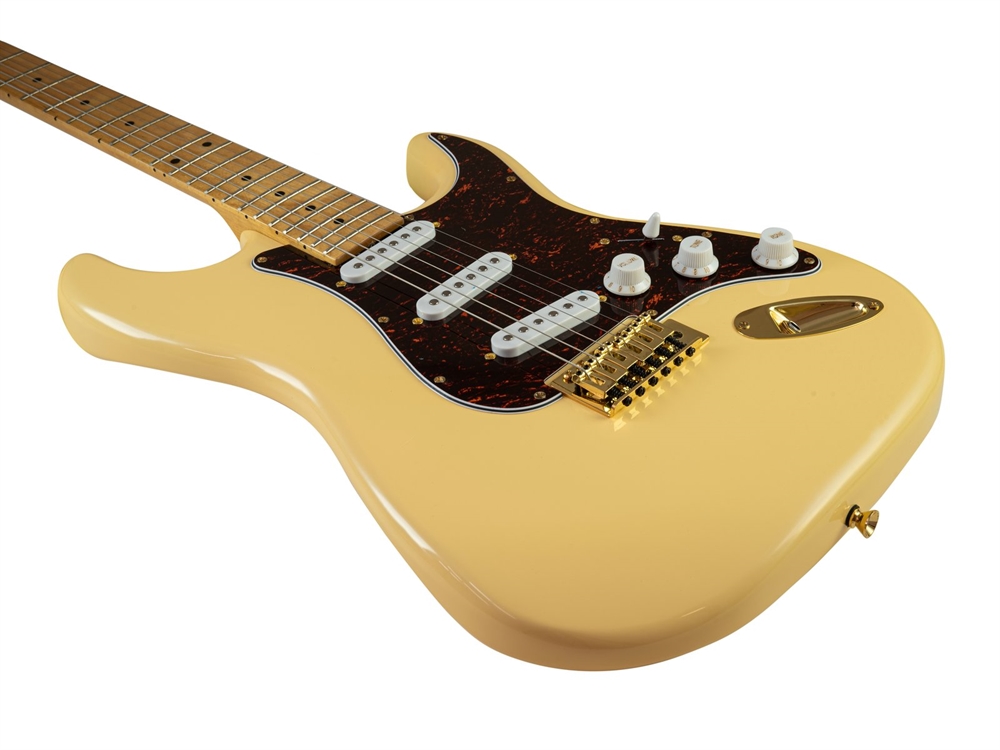 Her er du: Disconetto » Instrumenter » Guitar » El Guitar » Højre Hånds Guitar DIMAVERY ST-203 E-guitar, vintage hvid På lager På lager, 3-5 hverdage Bedømmelse for DIMAVERY ST-203 E-guitar, vintage hvidProduktet er endnu ikke bedømt 1.179,00DKK ved 1 stk. Vis uden moms Trustpilot E-guitar i ST-form E-guitar i ST-form Pakkeindhold 1 x instrument, 1 x jackkabel, 2 x unbrakonøgle, 1 x tremolostang Pickup: 3 x single coil Version: Højrehåndsversion Hals: Påskruet hals af ahorn, Grebsbræt: Blackwood 22 bånd Krop: 4/4 ST-form Malet ask Slagplade: Skel Skala længde: 648 mm Antal strenge: 6 Regulator: 1 x volumen, 2 x tone PU switch: 1 x 5-vejs skifter Bro: ST-stil tremolo Hardware: Forkromet Farve: Hvid, vintage, forkromet Vægt: 3,25 kg Varenr.: E-26211072 Vi anbefaler DIMAVERY Guitar Wall-Mount ECO III DKK 39,00 Dimavery gulv guitarstativ. Til el guitar DKK 169,00 Sammenklappeligt nodestativ. NTS-1. Sort DKK 109,00 El guitar strenge sæt. 009-046 DKK 59,00 Dimavery instrument kabel. Sort/ sølv. 3 meter DKK 99,00 Guitarist fodstøtte. Dimavery Justérbar. Hit til prisen DKK 69,00 Guitartaske. Soft bag Til el guitar. Sort DKK 359,00 Guitarforstærker 15 WDimavery GA-15 DKK 819,00 DIMAVERY SGKT-25 Clip Tuner DKK 69,00