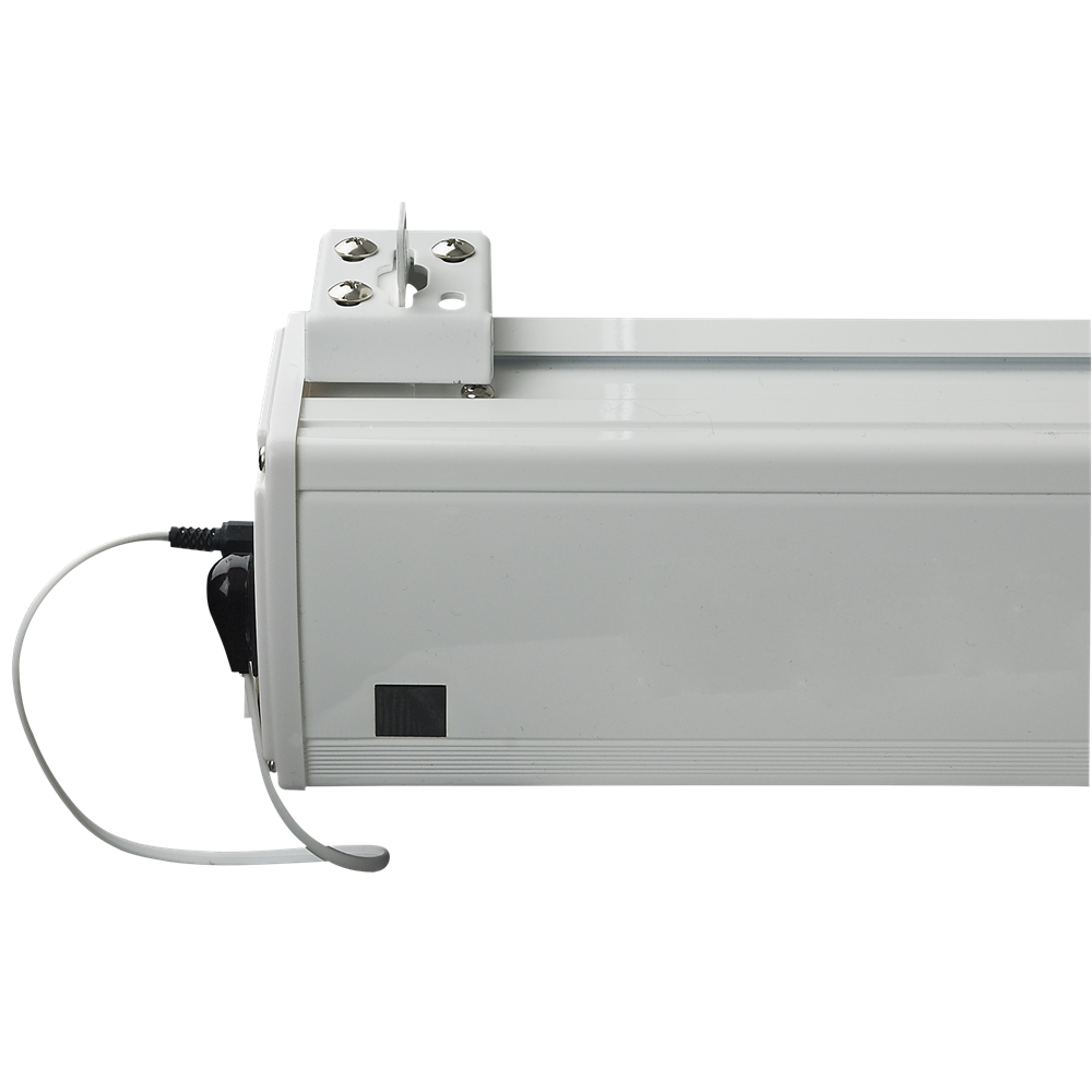 Proscreen Electric skærmen har et stærkt vævet glasfiberstof med sort kant. Glasfiberen forhindrer rynker eller bølger på grund af ændringer i temperatur, luftfugtighed eller trækkræfter. Den er derfor egnet til alle indendørsmiljøer. Desuden kan skærmen vise projektioner høje i kontrast og rige på farver.