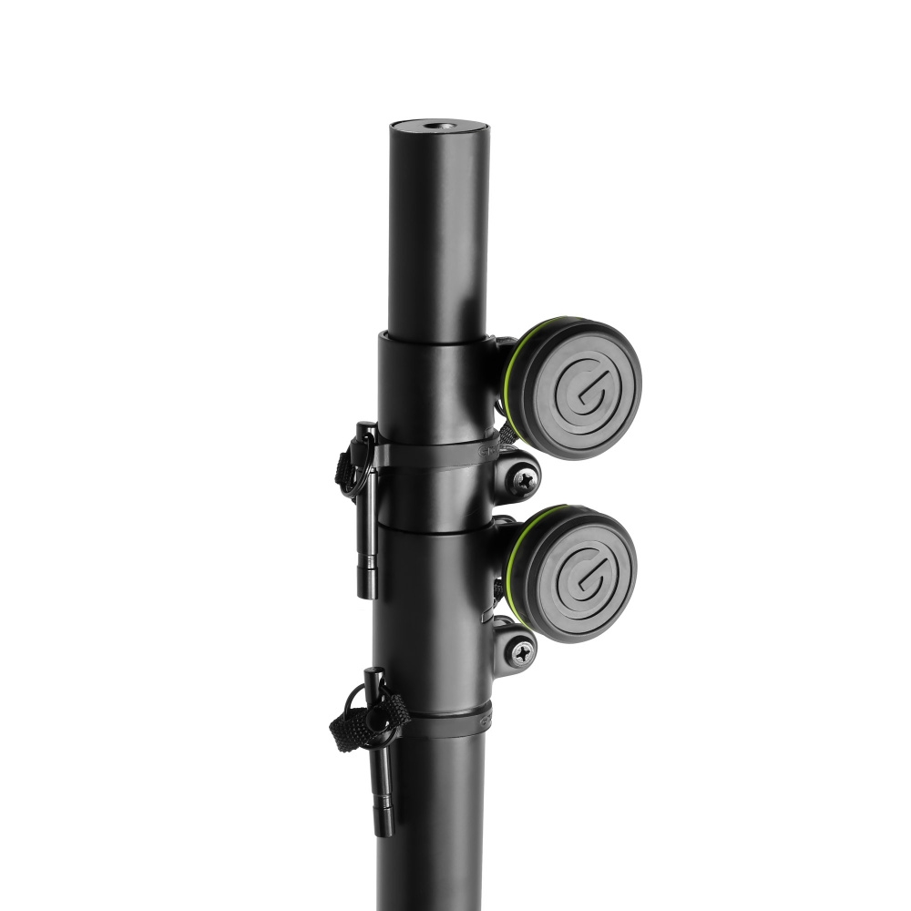 The great advantage: thanks to the double extension, you can raise your lights and PA speakers up to 3.5 metres. A sleeve has been added to the bottom end of the pole to ensure additional stability.