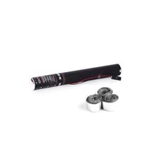 Elektriske konfettirør - Med metallic streamersKonfettirør er nok kendt af de fleste. Disse elektriske konfettirør skyder helt op til 20 meter med flotte lange streamers. Vores streamersrør er fra den hollandske producent TCM og i absolut bedste professionelle kvalitet.Hos Disconetto har vi et stort udvalg af disse elektriske streamersrør, der fås i mange forskellige farver. Metallic konfettirør anbefaler vi primært til indendørs brug, for at undgå at det havner i naturen. Men skal man endelig bruge metallic konfetti udendørs, er det disse rør med streamers man skal bruges, da oprydningen er meget nemmere end med almindelig konfetti. Husk at vi også har streamersrør med papir streamers. Alle vores metallic konfettistreamers er ikke-brandbare og smitter ikke af, heller ikke på vådt gulv. Sådan fungerer det: Streamersrøret placeres i en affyrringsenhed, som sættes i den ønskede vinkel. Vi sælger f.eks. denne TCM FX E-Shot der affyrerer røret, så snart der kommer strøm til enheden. Så enhver form for afbryder eller tænd/sluk panel kan anvendes. Hvis du vil styre dine konfetti streamers via DMX, kræver det et switch pack foruden din DMX styring. f.eks. TCM FX DMX Switchpack I eller TCM FX DMX Switchpack II. Der fås også udstyr, så du kan affyre dine streamersrør trådløst, i op til 500 meters afstand. Der skal du bruge denne: TCM FX WI-Shot samt den trådløse affyringspult til konfettirør |