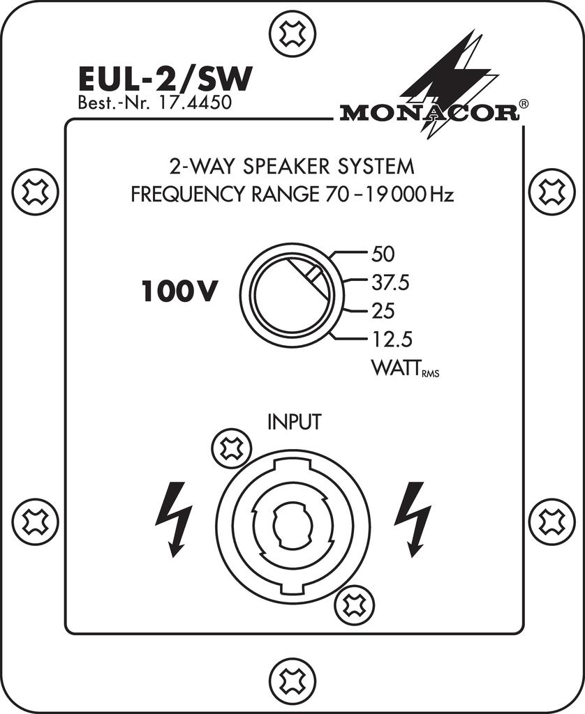 This series of speaker systems including subwoofer from MONACOR sets standards in the modern PA technology: high-quality lacquered cabinets of a perfect design, lightweight but robust and of high power capability, with an amazing sound and a high efficiency, the EUL-2... with professional 100 V technology. Real PA speaker systems for versatile applications at a very attractive price.