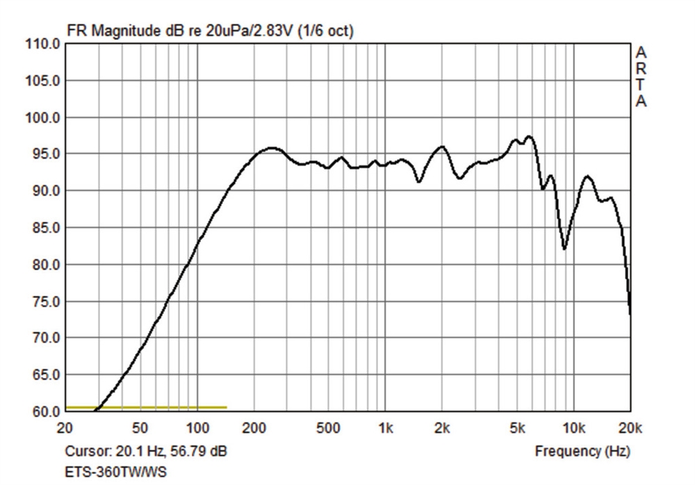 High-end column speakers, (indoors), 100 V.Column speakers in a wooden cabinet of compact size, coated with high-quality foils in decorative wood pattern, 2½-way technology with tweeter (25 mm textile dome), clearly extended frequency range compared with standard full range column speakers. The ETS-360... speakers impress with an incredibly dynamic and complete sound, a convincing speech intelligibility and an amazing sound even at higher volume levels.- 2 bass speakers, 4 bass-midrange speakers, 1 tweeter