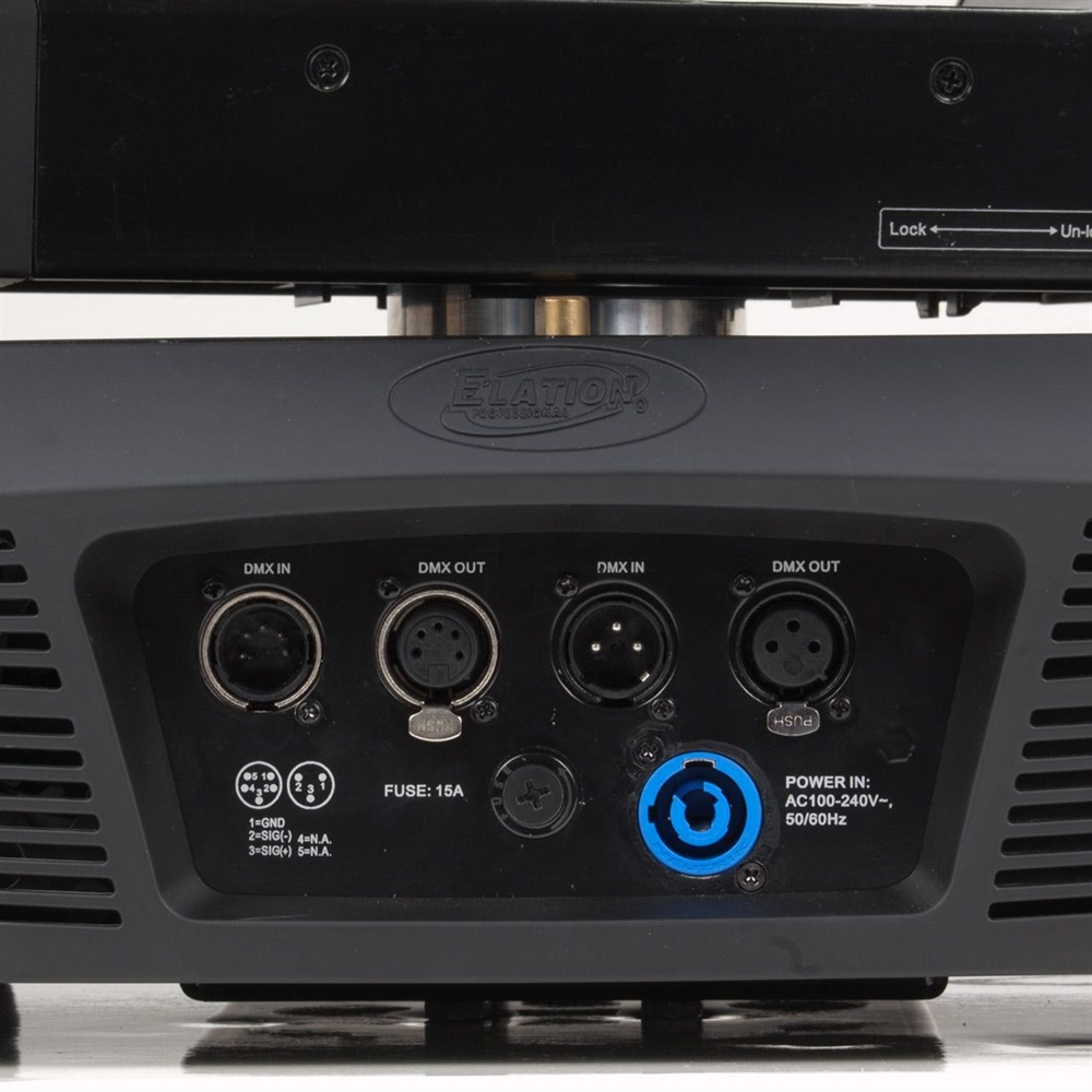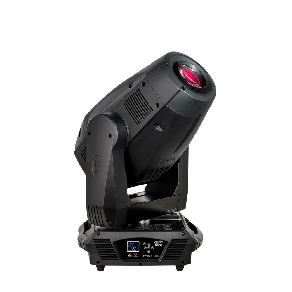 The new Platinum Spot 35 PRO™ features the MSR Platinum 35, 800W lamp from Philips™, motorized 8° to 50° zoom and focus, bi-directional animation, 3-facet rotating prism and frost effects, high speed mechanical shutter, strobe and iris, 8 colors including UV, CTO, CTB and white (open), CMY color mixing, 12 rotating, indexing, interchangeable glass & metal gobos, pan/tilt lock, internal EWDMX wireless DMX receiver, RDM (Remote Device Management) protocol support, locking 3/5pin DMX in/out and locking power in connections, (6) button touch control panel, 1,200W max power consumption, and a multi-voltage universal auto switching power supply (120-240V).