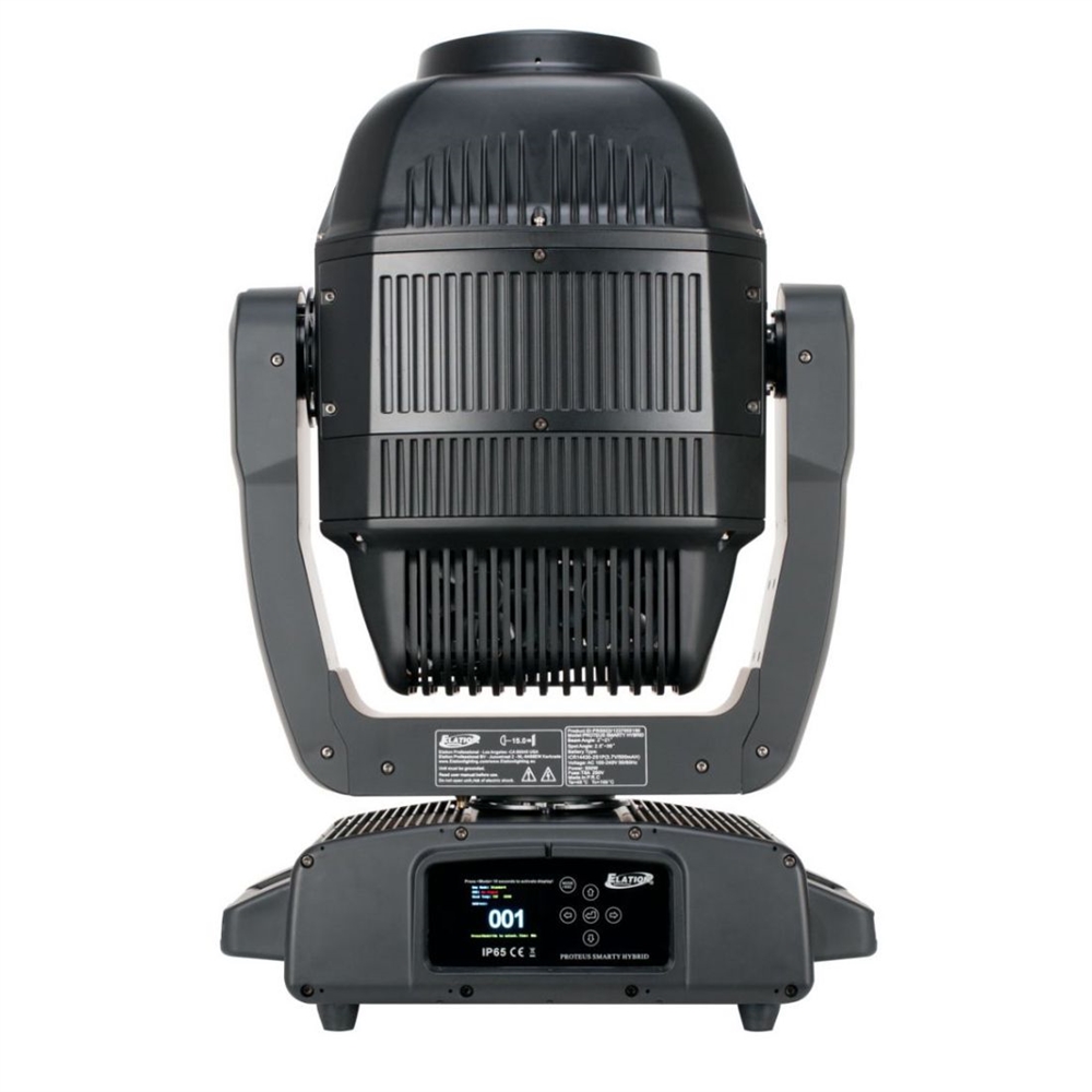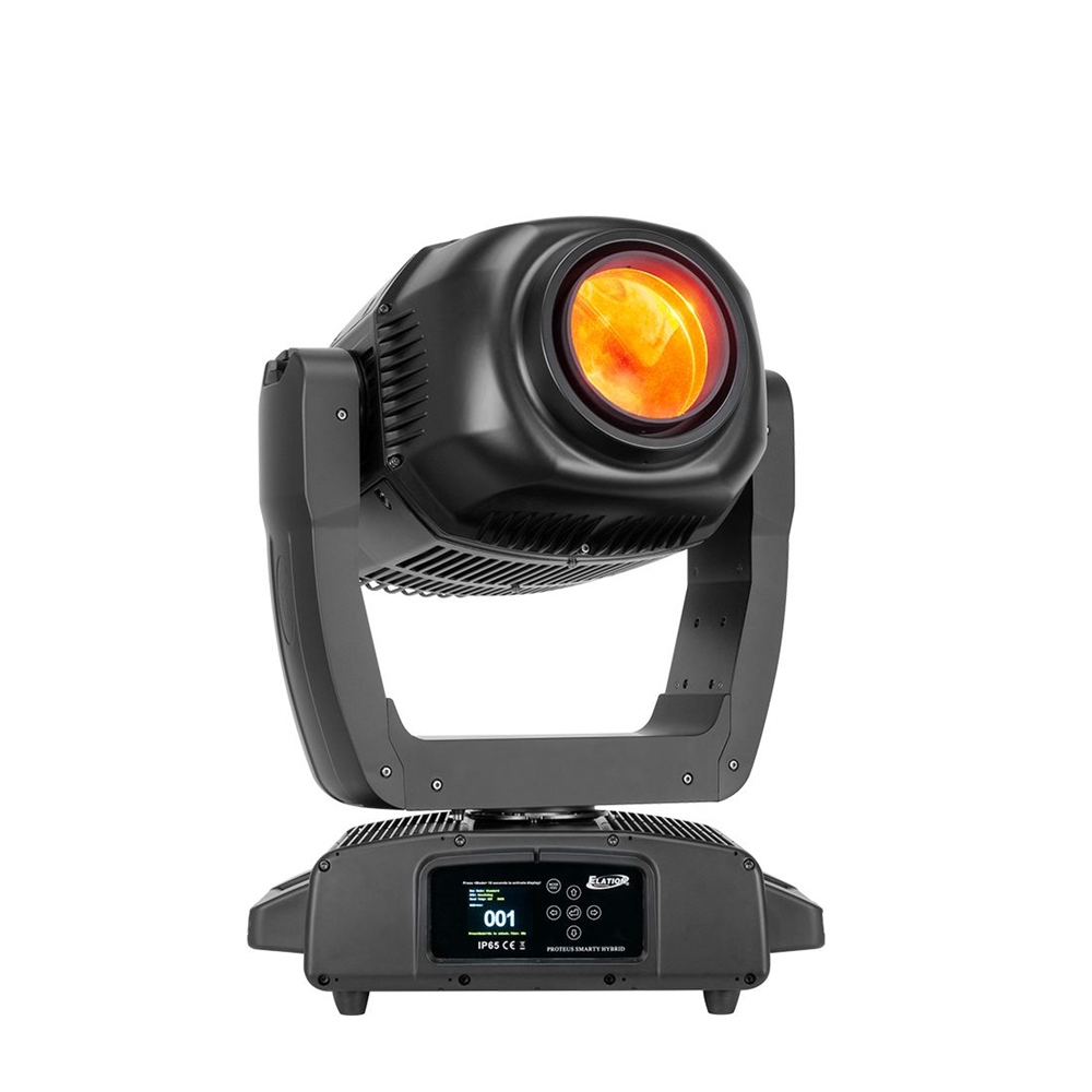 The PROTEUS SMARTY HYBRID is full featured IP65 certified Spot, Beam and Wash Hybrid fixture for indoor and outdoor use. It features the all new Philips™ MSD Platinum 200 Flex lamp with “FLEX” technology which uses a smartly designed discharge lamp/ballast package to produce high output and compact performance at an efficient, long life solution of up to 6,000 hours.
