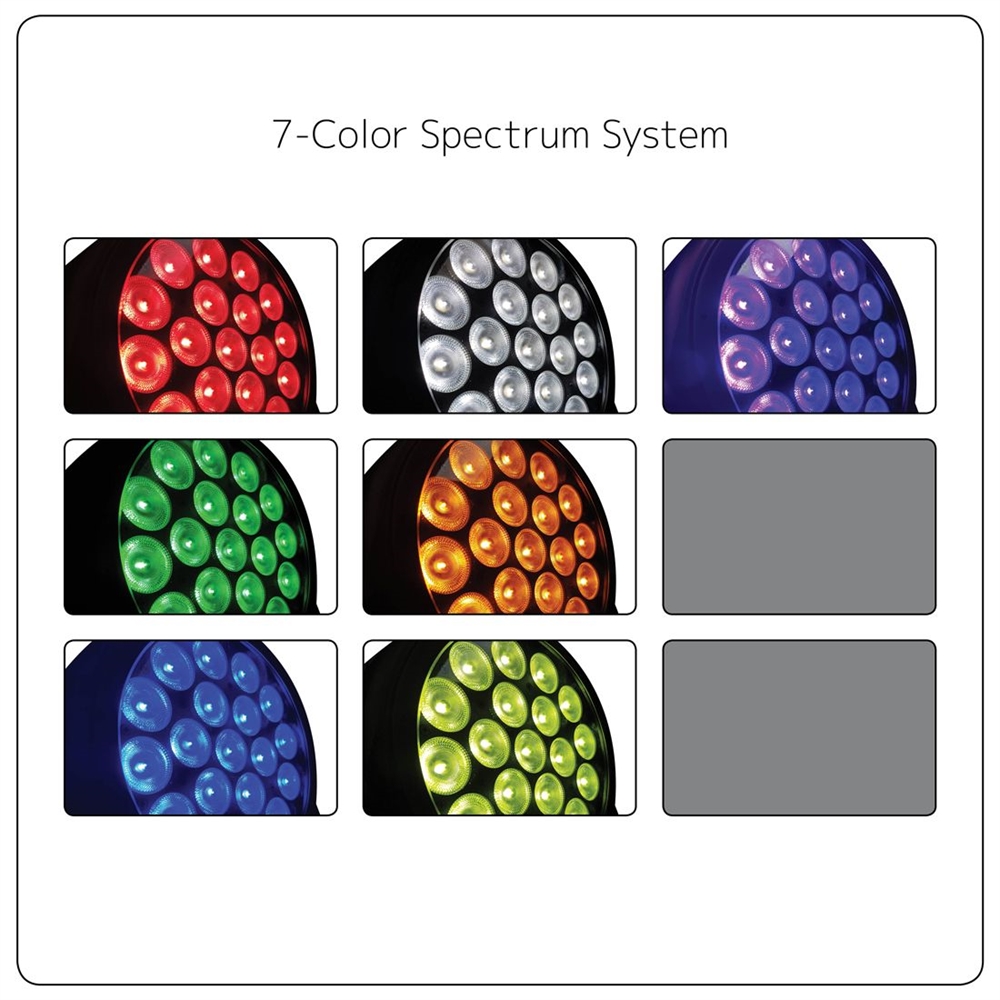 (19) 25W 7-IN-1 RGBAW + Lime + UV (395nm) LEDs