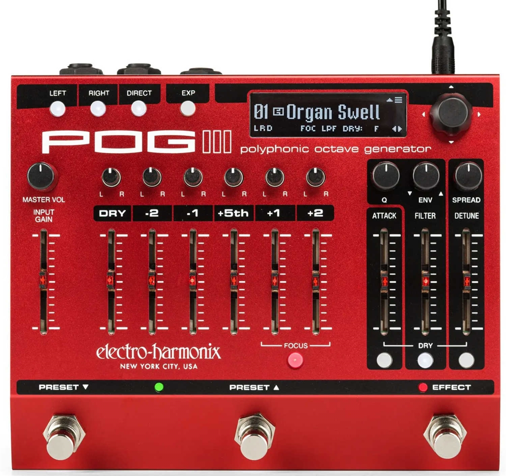 Thanks to the helpful feedback from loyal POG and POG2 users, the POG3 includes the updates players have been asking for including 100 presets, full MIDI capability, expanded I/O, and additional footswitches. Plus, the return of the INPUT GAIN control from the original POG!