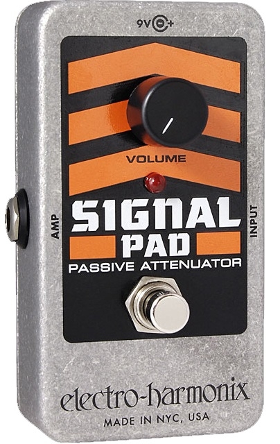 The Signal Pad is a passive attenuator that allows you to instantly switch to a different preset volume. It's like your guitar's volume knob, with a fully-passive and color-free circuit. Leave your amp's volume set high for overdrive, and use the Signal Pad to lower your level for a clean sound -- then switch it off to kick in your amp's natural overdrive. You can also experiment with the Signal Pad anywhere in your effects chain -- you'll bring out new tonal combinations from your favorite old pedals.