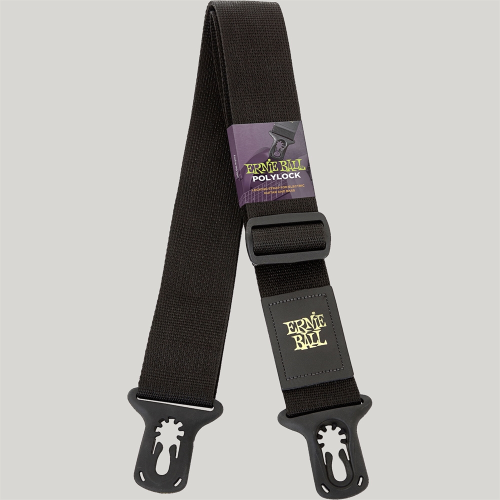 Locking Strap for Electric Guitar and Bass Patent-pending design makes it easy to securely attach the strap to your electric guitar or bass, without the need for modification or bulky hardware. Simply fasten your Ernie Ball PolyLock Strap to the existing strap buttons on virtually any electric guitar or bass and you’re set!