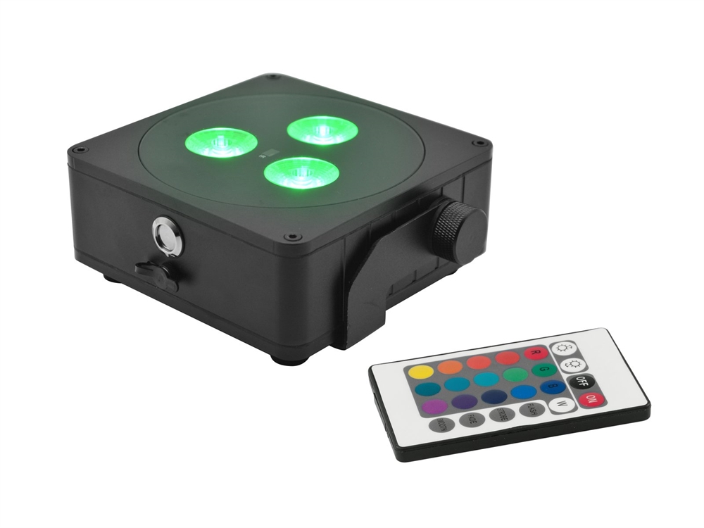 | Control: | Master/slave function; IR remote control (provided); QuickDMX built-in; Stand-alone; Sound to light via Microphone; Light J Software |