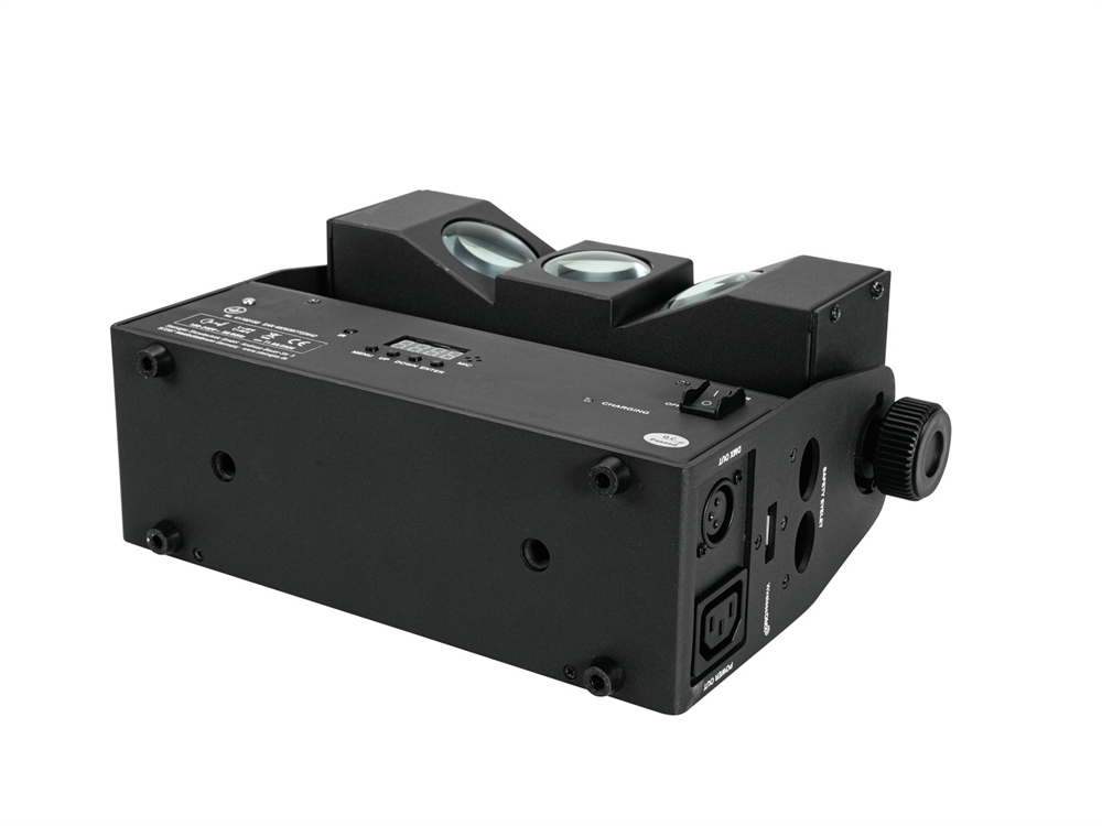| Control: | Stand-alone; Master/slave function; Sound to light via Microphone; IR remote control; DMX; QuickDMX via USB (optional); W-DMX by wireless solution via USB (optional); CRMX by LumenRadio via USB (optional) |