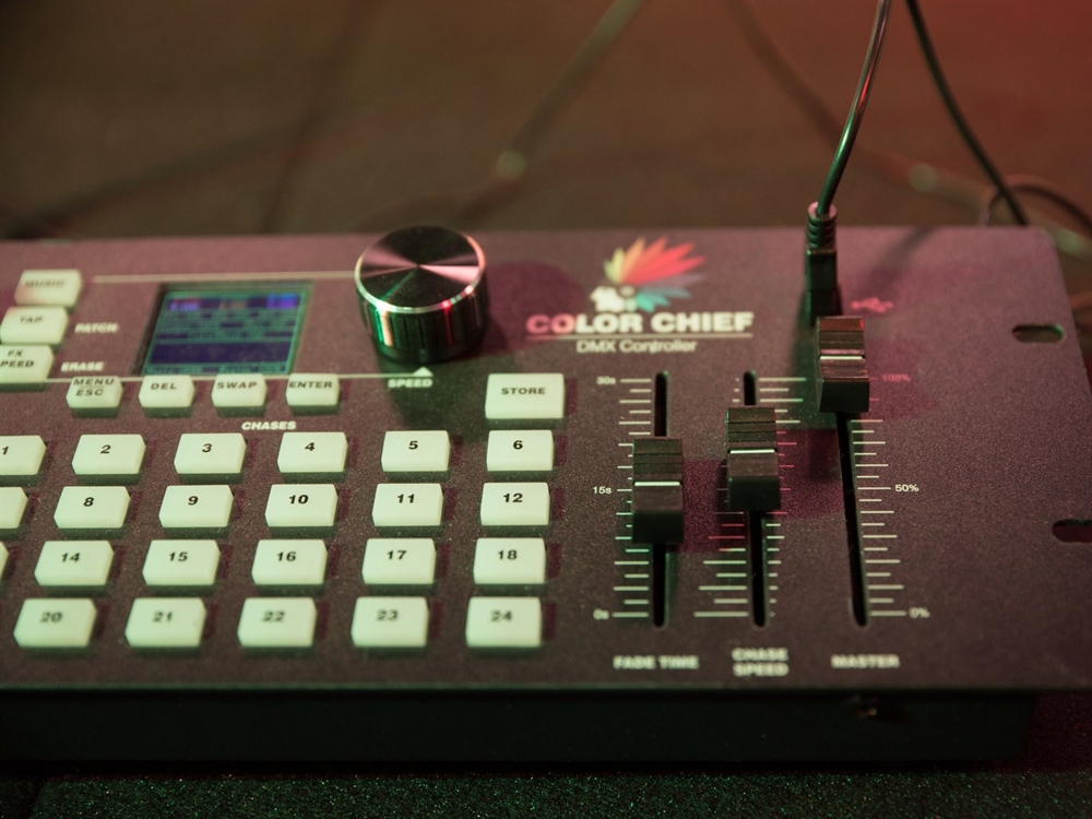 As the name suggests, the Color Chief’s strong suit is its colors. It supports up to 6 colors, thus it does not matter whether you have a simple RGB spot light or a complex light effect unit with red, green, blue, amber, white and UV. Spot lights with individual colors, e.g. white light spot lights, can be integrated as well. The Color Chief’s clear design makes it particularly easy to be always in control.