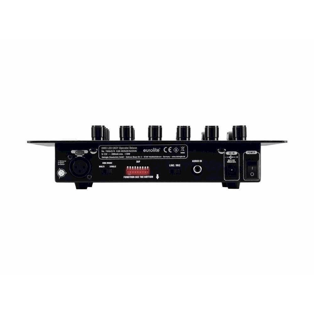 Her er du: Disconetto » LYS » Styring og Dæmper » LED controller Eurolite DMX LED EASY Controller til 4 farvede LED spot/KLS-sæt På lager På lager, 3-5 hverdage Bedømmelse for Eurolite DMX LED EASY Controller til 4 farvede LED spot/KLS-sætProduktet er endnu ikke bedømt 909,00DKK ved 1 stk. Vis uden moms Trustpilot Controller til 4 farvede LED spotlights eller en KLS-sæt med 4 segmenter DMX-controller til standard LED spotlights Let betjening Kan styre 4 LED spotlights eller 1 KLS-sæt med 4 lamper DMX-kanaler til rød, grøn, blå, rav, hvid, UV, stroboskop og master 9 forskellige tilstande for valg af DMX-kanalsekvens 12 indbyggede forudindstillede programmer og 12 brugerdefinerede programmer (hver med op til 12 scener) Auto-tilstand eller lydstyring 4 farvekontroller med 12 farver hver 4 lysstyringskontroller Kontroller for samlet lysstyrke, kørehastighed, fade og stroboskop-hastighed Funktionstaster for Blackout, TAP/Tempo, Auto, Musik og Strobe Kompakt bordkonsol Controller kan bruges til: RGB Controller kan bruges til: RGBA Controller kan bruges til: RGBW Controller kan bruges til: RGBA+RGBW Controller kan bruges til: RGBWA Controller kan bruges til: RGBWA+UV Controller kan bruges til: RGBW+UV Controller kan bruges til: RGB+WA Controller kan bruges til: RGB+UV Controller kan bruges til: Styring af KLS classic Controller kan bruges til: Generel styring af KLS Strømforsyning: 100-240 V AC, 50/60 Hz via inkluderet strømadapter (9 V/300 mA) Lydstyring: via indbygget mikrofon eller RCA-indgang DMX512 output: 3-pin XLR-stik Dimensioner (L x B x H): 260 x 140 x 65 mm Antal DMX-kanaler: 24 Vægt: 1,2 kg Strømforbrug: 10 W IP-klassificering: IP20 Farve: Sort Højde: 6,5 cm Dybde: 14 cm Bredde: 26 cm Varenr.: E-70064574 Kunder købte også DMX kabel. 3 pol XLR-XLR. 10 meter DKK 125,00 Numark NS4FX - 4-kanals DJ Controller DKK 3.279,00 Spejlkugle sæt 20 cm. Med motor, 5W LED spot med farver & remote DKK 819,00