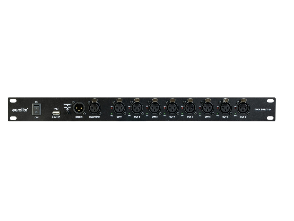 8 x 3-pin XLR (F) monteringsversion separat (galvanisk) med uafhængig driver og statusindikator