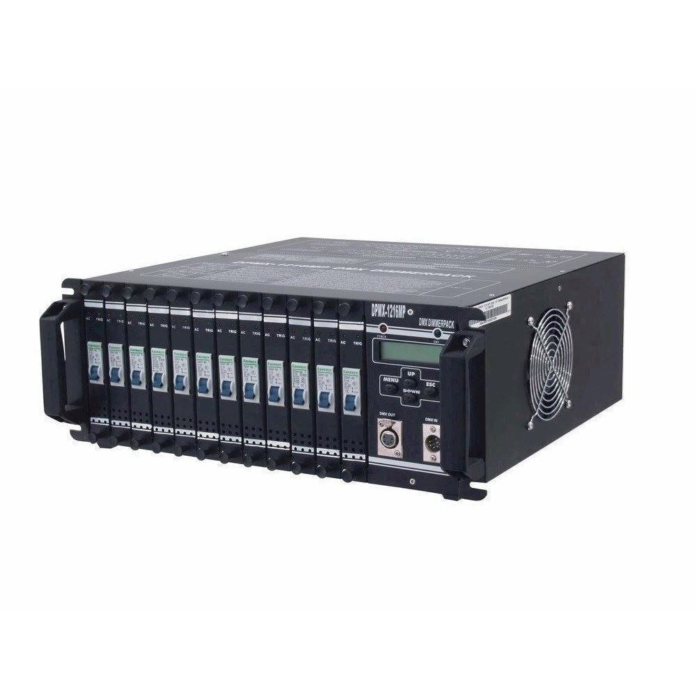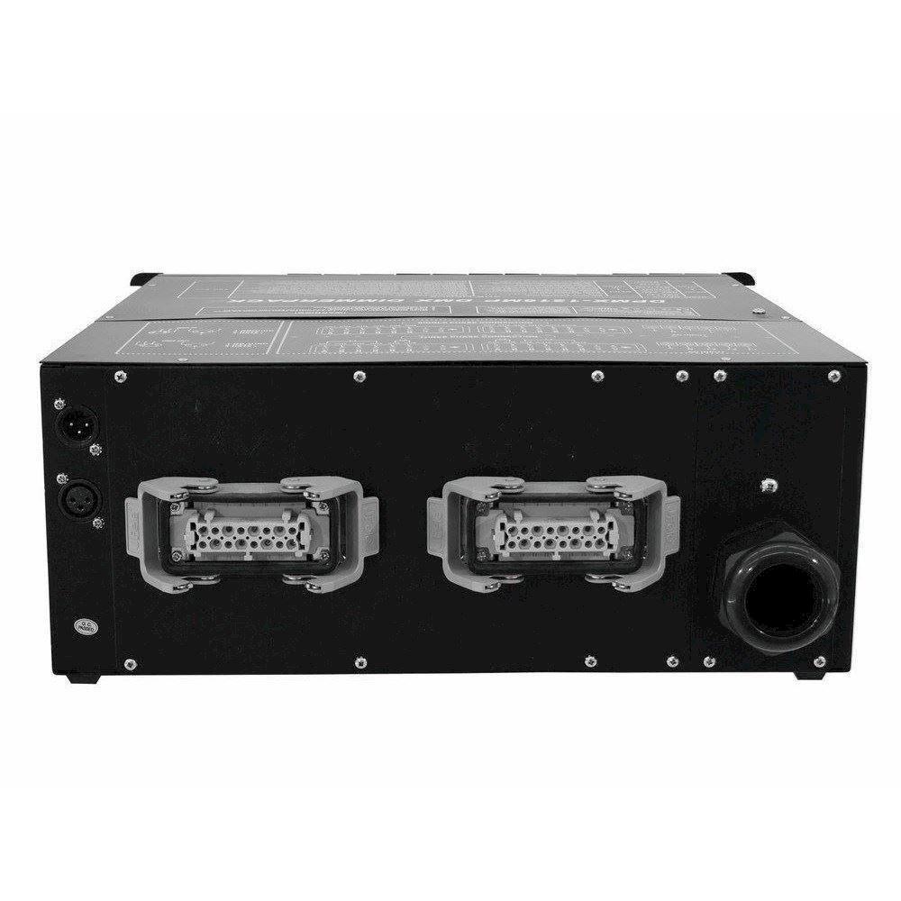 Her er du: Disconetto » LYS » Styring og Dæmper » Dæmpere & Switch Pack » Dæmpere & Switch Pack Eurolite DPMX-1216 MP DMX Dæmper til Hartning udtag, 16 Amp pr. kanal Ikke på lager Forventet levering om ukendt antal uger Bedømmelse for Eurolite DPMX-1216 MP DMX Dæmper til Hartning udtag, 16 Amp pr. kanalProduktet er endnu ikke bedømt 10.519,00DKK ved 1 stk. Vis uden moms Trustpilot 12 x 16A dimmer, service friendly modules, 2 16-pin multipin sockets 12 x 16A dimmer, service friendly modules, 2 16-pin multipin sockets12-channel dimmer pack with up to 16 A output per channelModular design of the individual dimmer modules for quick and easy change3-phase or 1-phase power supplyDMX512 control or analog controlAdjustable lamp preheat (0-50%) and limiter function to prolong bulb lifeCurve function for selection of different fade modesDim or switch option assignable to each channelDMX Fail function: automatic digital input check to detect DMX signal errors12 built-in programs with adjustable speedManual mode for dimming capability without an external lighting controllerAll modes are displayed via LCDSynchronization of several devices possible via DMXAutomatic circuit breaker per channel (type C)Channel outputs on the rear panel via industrial socketsRack installation with 4 UOnly for professional use Power supply:230-380 V AC, 50 Hz Max. power output:43470 WMax. current:189 AMax. output/channel:3680 WMax. current/channel:16 ANumber of control channels:12Integrated programs:12Fuse:12 x C 16 A, 230 VDMX output:3-pin female XLR socketDMX input:3-pin male XLR socketOutputs:16-pin socketsDimensions (W x D x H):482 x 485 x 176 mmMinimum mounting depth:500 mmWeight:27 kgMax. power output:43470 WNumber of DMX channels:12Color:BlackHeight:17,8 cmDepths:48,5 cmWidth:48,3 cm Varenr.: E-70064185 Vi anbefaler Eurolite DPMX dæmper-Modul 1216 MK2 DKK 609,00