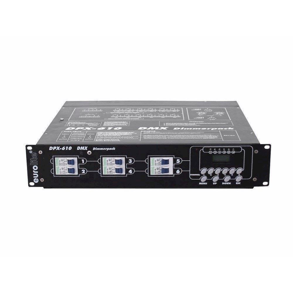 Her er du: Disconetto » LYS » Styring og Dæmper » Dæmpere & Switch Pack » Dæmpere & Switch Pack Eurolite DPX-610 DMX Dæmper til skrue terminaler På lager På lager, 3-5 hverdage Bedømmelse for Eurolite DPX-610 DMX Dæmper til skrue terminalerProduktet er endnu ikke bedømt 4.099,00DKK ved 1 stk. Vis uden moms Trustpilot 6 x 10A dimmer for DMX & analog signals, connection via terminal blocks 6 x 10A dimmer for DMX & analog signals, connection via terminal blocksUniversal dimmer pack for professional useCan be operated 1-phase or 3-phase6 x 10 ADMX-control or analogue control possibleThe DMX-starting address can be adjusted on the deviceSynchronisation of several DPX-610 possible via DMXAdjusting the lamp pre-heatAll modes are displayed via LEDs and the displayWith automatic circuit breaker per channelChannel-outputs on the rearpanel via pole connectorsOnly for professional use Power supply:230-380 V AC, 50 HzMax. power output:13800 WMax. current:60 ANumber of control channels:6Max. output/channel:2300 WMax. current/channel:10 AIntegrated programs:12Output sockets:via pole connectorsCircuit breaker:6 x C 10 ADimensions (W x D x H):410 x 482 x 95 mmRack installation with 2 UMinimum mounting depth:500 mmWeight:8 kgMax. power output:13800 WNumber of DMX channels:6Color:BlackHeight:8,9 cmDepths:41 cmWidth:48,3 cm Varenr.: E-70064120 Vi anbefaler 24 kanalers DMX scene setter lysstyring - Eurolite DKK 1.939,00 OMNITRONIC DIN cable 8pin 3m DKK 69,00