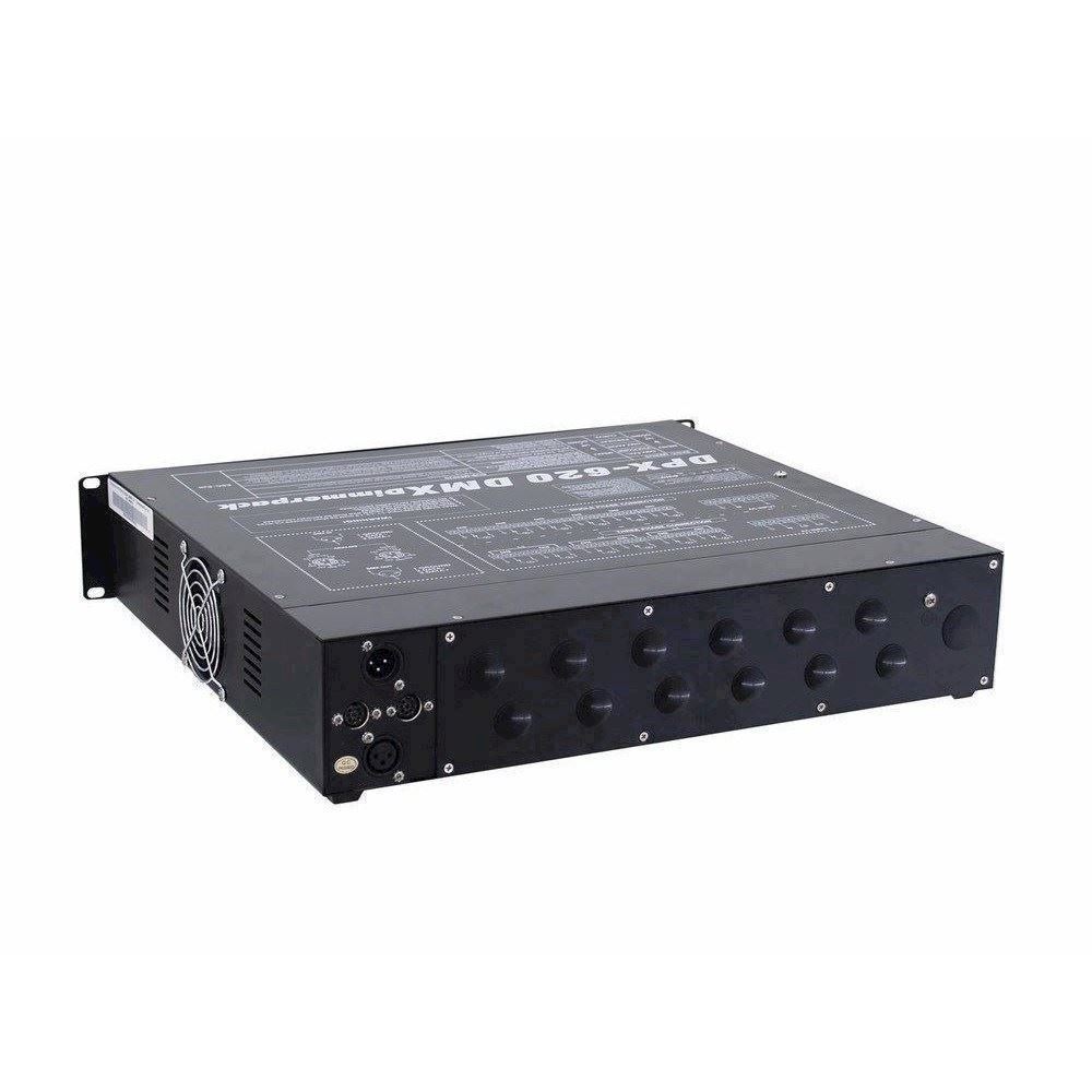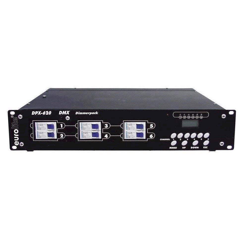 Her er du: Disconetto » LYS » Styring og Dæmper » Dæmpere & Switch Pack » Dæmpere & Switch Pack Eurolite DPX-620 DMX Dæmper til Skrue terminaler På lager På lager, 3-5 hverdage Bedømmelse for Eurolite DPX-620 DMX Dæmper til Skrue terminalerProduktet er endnu ikke bedømt 5.119,00DKK ved 1 stk. Vis uden moms Trustpilot Digital 6-channel dimmer pack Digital 6-channel dimmer packUniversal dimmer pack for professional useCan be operated 1-phase or 3-phase6 x 20 ADMX-control or analogue control possibleThe DMX-starting address can be adjusted on the deviceSynchronisation of several DPX-620 possible via DMXAdjusting the lamp pre-heatAll modes are displayed via LEDs and the displayWith automatic circuit breaker per channelChannel-outputs on the rearpanel via pole connectorsOnly for professional use Power supply:230-380 V AC, 50 HzMax. power output:27600 WMax. current:120 ANumber of control channels:6Max. output/channel:4600 WMax. current/channel:20 AIntegrated programs:12Output sockets:via pole connectorsCircuit breaker:6 x C 20 ADimensions (W x D x H):420 x 482 x 95 mmRack installation with 2 UMinimum mounting depth:500 mmWeight:8 kgMax. power output:27600 WNumber of DMX channels:6Color:BlackHeight:8,9 cmDepths:42 cmWidth:48,3 cm Varenr.: E-70064130 Vi anbefaler Forstærker rack. 2 unit. 57 cm. dyb DKK 1.939,00