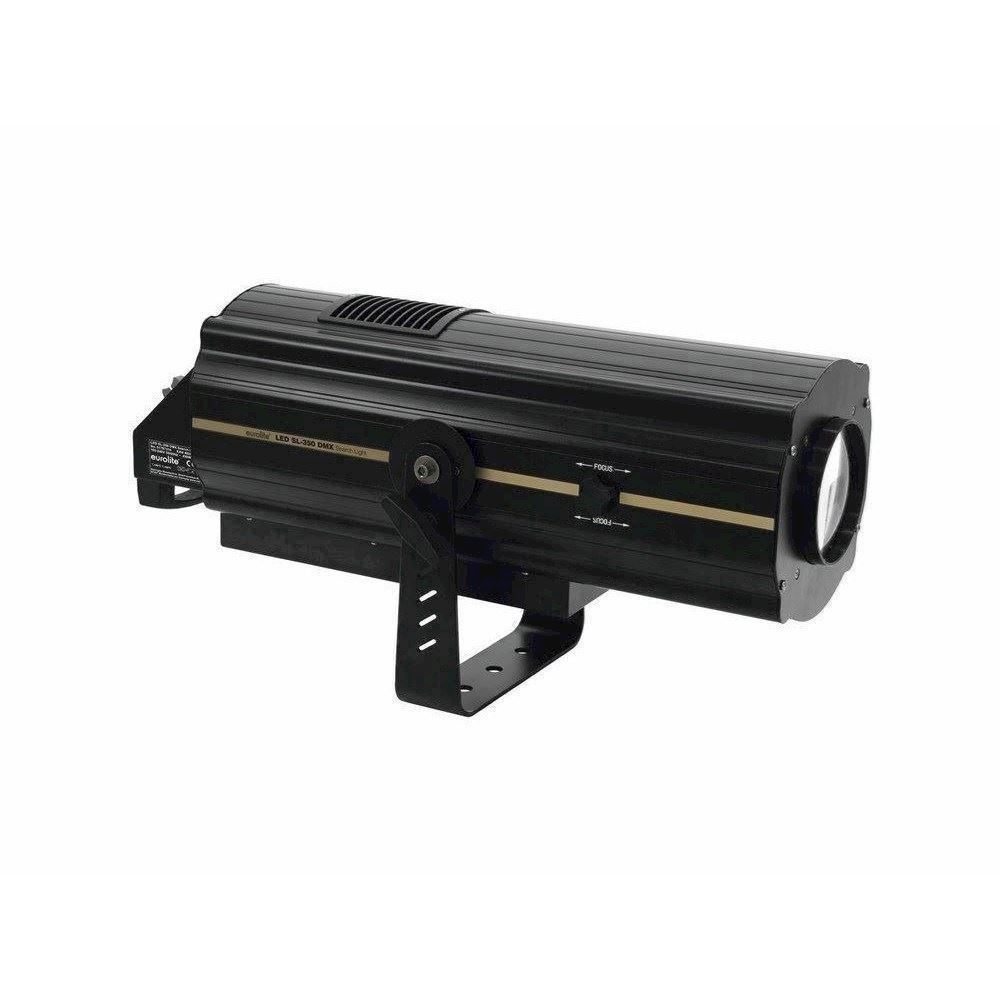Her er du: Disconetto » LYS » Teaterspots » LED Følgespot Eurolite Følgespot med DMX & 300 watt LED SL-350 På lager På lager, 3-5 hverdage Bedømmelse for Eurolite Følgespot med DMX & 300 watt LED SL-350Produktet er endnu ikke bedømt 13.719,00DKK ved 1 stk. Vis uden moms Trustpilot DMX controlled follow spot with a powerful 300 W LED Follow spot with cold white 300 W LED for medium distancesOperable in manual mode or via DMXDMX512 control possible via any commercial DMX controller (occupies 6 channels)Suitable for a projection area of up to 30 metersManual control via control panel with buttons and fadersComfortable DMX addressing via LED display and four operating buttonsColor wheel with 5 different, dichroic color filters and openStrobe effect with adjustable speed (1-20 flashes/sec.)Three correction filtersSteplessly adjustable iris from 5 - 100%Dimmer for stepless adjustment of the light-output brightness between 0 % and 100 %Manual focusMounting bracket for installation on a standSwitch-mode power supply for operation between 100 and 240 voltsPower connection via Neutrik PowerCon socket and included power cableColor generation: Colour wheel Power supply:100-240 V AC, 50/60 HzDMX channels:6DMX connection:3-pin XLRFlash-rate:20 HzLED type:300 WLED number:1Beam angle:10°Dimensions (L x W x H):600x275x300 mmWeight:10 kgIP classification:IP20Power consumption:490 WLamp type:LED lampBeam angle:10 °Height:30 cmWidth:27,5 cmLength:60 cmEcodesign regulation:YesSpecial product:Not designed for household room illuminationPurpose:Show effect lighting Varenr.: E-51787316 Vi anbefaler Eurolite STV-250 Follow Spot Stand, black DKK 3.069,00 ROADINGER Flightcase 1x LED SL-350/SL-160 with wheels DKK 4.609,00 Følgespot stativ. 135-210 cm. Max. 18 kg. DKK 719,00 ROADINGER Flightcase SL-160/SL-350 DKK 3.069,00