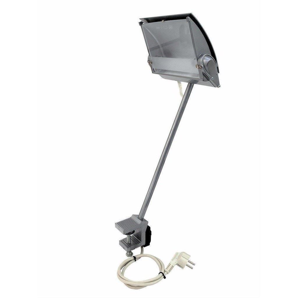 300 W halogen floodlight with extension arm and screw terminal for fixation, silver
