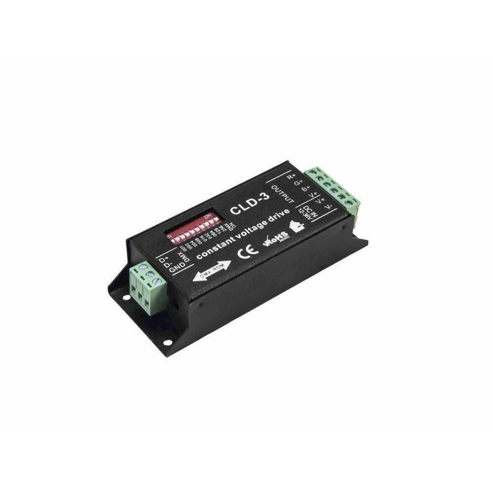 Her er du: Disconetto » LYS » Special lys » LED Strips » LED Driver Eurolite LC-4 LED Strip RGB DMX Controller På lager På lager, 3-5 hverdage Bedømmelse for Eurolite LC-4 LED Strip RGB DMX ControllerProduktet er endnu ikke bedømt 339,00DKK ved 1 stk. Vis uden moms Trustpilot 3-channel LED controller with DMX interface for RGB LEDs 12-24 VCompact LED controller for controlling RGB LEDs (12-24 V) via DMXConverts standard DMX512 signals to PWM signals e.g. for driving LED strips3 separate control channels for individual color mixing of red, green and blue LEDsBuilt-in programs enable stand-alone operation (individual color selection, color change, color fade, running speed)DMX addressing and settings via DIP switchesPlug-in screw terminals for connecting the LEDs and the power supply (accessory)Rugged black metal housing Power supply:12-24 V DCStandby current:<1 WOutput power: max. 144 W (12 V), 216 W (24 V)Output current:max. 3 A per channel (9 A total)DMX channels:4DMX connection:screw terminalsDimensions (L x W x H):109 x 45 x 27 mmWeight:0,13 kgHeight:2,7 cmDepths:10,9 cmWidth:4,5 cm Varenr.: E-50530595 Vi anbefaler Eurolite LED Strips 150 5m 5050 RGB 12V DKK 409,00 Eurolite LED Strips 300 5m 5050 RGB 12V DKK 509,00 Kunder købte også Mikrofon/ signal kabel. XLR-XLR "Best Buy" 10 meter DKK 129,00 Mikrofon/ signal kabel. XLR-XLR "Best Buy" 20 meter DKK 229,00 Eurolite LED Strip Connector 4Pin 10mm DKK 29,00