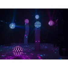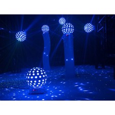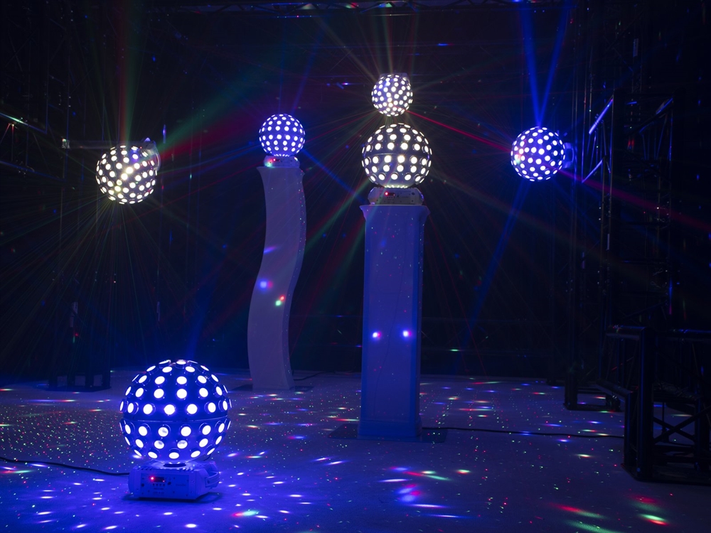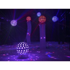 Med 5 kraftfulde 8 W RGBW LED'er (4in1) kan du skabe levende og farverige lysshow. De to laserdioder giver mulighed for at projicere et utal af laserstråler og tilføje en ekstra dimension til din fest. Du behøver ikke bekymre dig om sikkerheden, da denne enhed er laserklasse 2M og ikke kræver yderligere beskyttelsesforanstaltninger eller udnævnelse af en lasersikkerhedsansvarlig.