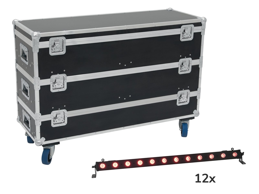 Her er du: Disconetto » LYS » Lamper og Belysning » LED Bar Eurolite LED BAR-12 QCL RGB+UV Bar + Case with wheels Ikke på lager Forventet levering om ukendt antal uger Bedømmelse for Eurolite LED BAR-12 QCL RGB+UV Bar + Case with wheelsProduktet er endnu ikke bedømt 26.679,00DKK ved 1 stk. Vis uden moms Trustpilot EUROLITE LED BAR-12 QCL RGB+UV Bar + Case with wheelsDenne vare kan KUN sendes kun med fragtmand Dette sæt bestående af: 12 x EUROLITE LED BAR-12 QCL RGB+UV Bar 1 x ROADINGER Flightcase 12x LED Bar Size L EUROLITE LED BAR-12 QCL RGB+UV BarLight effect bar (1 m) with RGB+UV color mixing12 high-power 4 W RGB+UV LEDs (4in1)Built-in auto and music show programsDirect color selection for 20 preset colorsStepless RGB+UV color blend, color change, color fade, dimmer and strobe effectAddressing and setting via control panel with 4-digit LED displaySupports QuickDMX - the wireless DMX system from EuroliteBuilt-in phantom-powered USB port for QuickDMX receivers (accessories)Swivel mounting bracketIEC terminals for power linking up to 8 unitsSwitch-mode power supply for operation between 100 and 240 voltsLED: 12 x high-power 4 W 4in1 QCL RGB/UV (homogenous color mix)Can be operated in 2; 4; 5; 6; 9 CH modeThe device is cooled by passive convectionControlling by Stand-alone; DMX; Sound to light via Microphone; Master/slave functionIs in Light J Software; EUROLITE LED PC-Control 512 software; EASY SHOW already preprogrammedFlicker-free projectionEffect: Strobe effect; UV effectROADINGER Flightcase 12x LED Bar Size LPRO flightcase for 12 x LED barModular flightcase for LED bars approx. 1 meter in length3 stackable units accommodate 4 LED bars eachBottom unit with 4 castors, 2 of which with locking brakesRemovable coverDesigned for LED bar LED BAR-18 (51930411) and comparable modelsHigh-quality workmanship with multiplex birch wood, dark brown laminatedInterior upholstered with foamAluminum profile frames (20 mm) with rounded edgesThree-leg, large steel ball corners12 high-quality butterfly locks6 case handlesTransport aid: With wheelsMade in Europe Weight:68,90 kgEUROLITE LED BAR-12 QCL RGB+UV BarPower supply:100-240 V AC, 50/60 HzPower consumption:25 WIP classification:IP20Protection class:Class IPower connection:Mains input IEC connector (M) mounting version Power supply cord with safety plug (provided)Power output:1 x IEC connector (F) mounting versionLamp type:LED lampLED:12 x high-power 4 W 4in1 QCL RGB/UV (homogenous color mix)Flash rate:0 - 20 HzDMX channels:2; 4; 5; 6; 9DMX input:3-pin XLR (M) mounting versionDMX output:3-pin XLR (F) mounting versionCooling:Passive convectionControl:Stand-alone; DMX; Sound to light via Microphone; Master/slave function; Light J Software; EUROLITE LED PC-Control 512 software; EASY SHOWBeam angle:20°Beam angle (1/2 peak):20°Beam angle (1/10 peak):33°Housing color:BlackDisplay type:4 digits 7-segment LED displayDimensions:Length: 1,07 mDepth: 6,5 cmHeight: 10,3 cmWeight:2,85 kgNoise classification:Class 0 (no noise at all)Legal specificationsSpecial product:Not designed for household room illuminationintended use:show effect lightingROADINGER Flightcase 12x LED Bar Size LMaximum load:150 kgMaterial:Birch multiplex, 7 mmColor:Dark brown, laminatedCompartment dimensions:1,13 m x 8,5 cm x 9 cmInside dimensions:1,13 m x 40,5 cm x 16 cmDimensions:Width: 1,19 mDepth: 44 cmHeight: 84 cmWeight:34,70 kg Varenr.: E-20000891