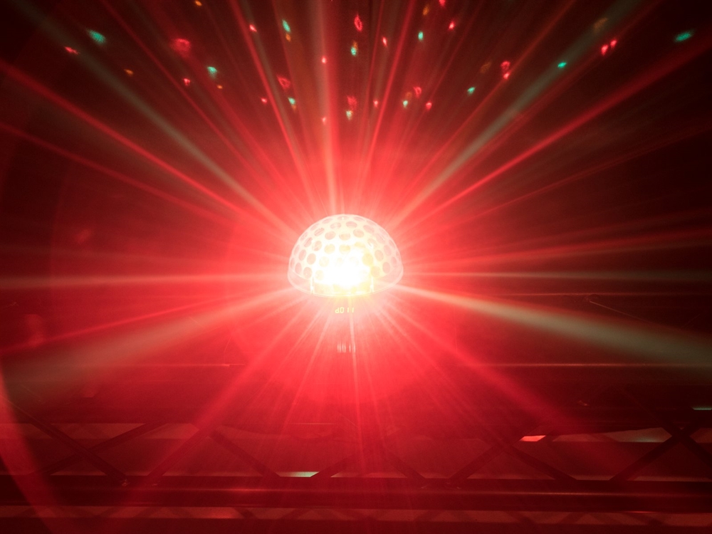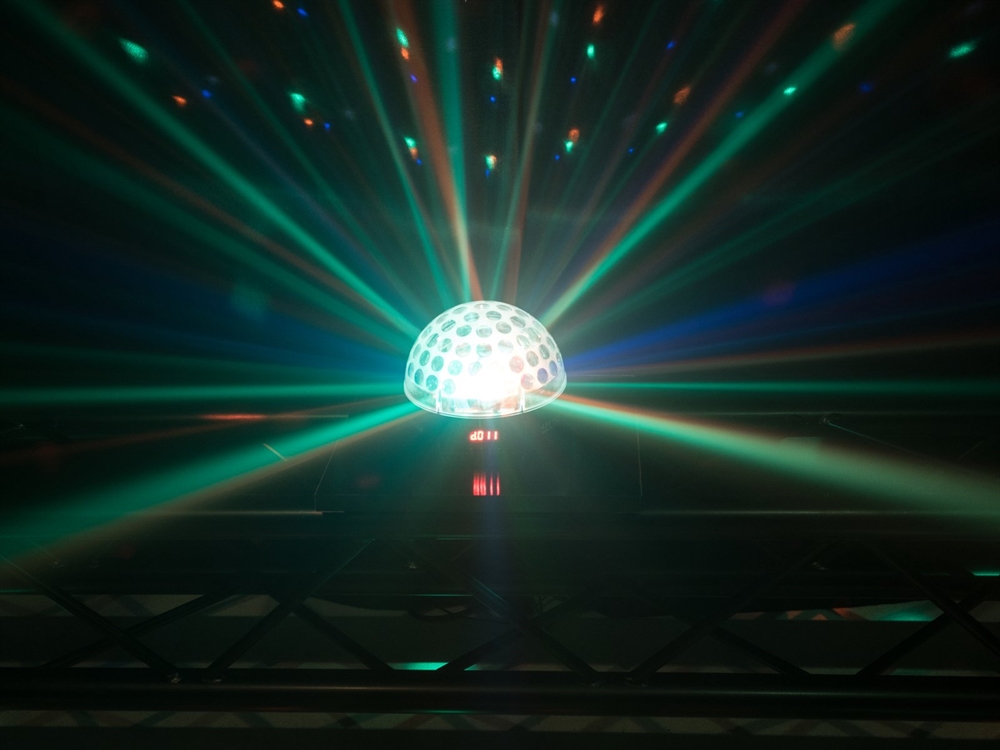 Her er du: Disconetto » LYS » Lyseffekter » DJ Lyseffekter » Beam Lys effekt Eurolite LED BC-6 Kompakt spejlkugleeffekt med RGBWA & DMX På lager På lager, 3-5 hverdage Bedømmelse for Eurolite LED BC-6 Kompakt spejlkugleeffekt med RGBWA & DMXProduktet er endnu ikke bedømt 509,00DKK ved 1 stk. Vis uden moms Trustpilot Kompakt spejlekugleeffekt med strålende plexiglas-dome og DMX Klar, facetteret overflade giver unikke lysstråleeffekter Udstyret med lyse røde, grønne, blå, ravfarvede og hvide LED'er 10 til 50 omdrejninger (180°) pr. minut skaber cirkulære lyseffekter Kan betjenes i stand-alone-tilstand eller via DMX DMX-512-styring mulig via enhver kommerciel DMX-controller (besætter 9 kanaler) Lydstyring via indbygget mikrofon Komfortabel adressering og indstilling via kontrolpanel med 4-cifret LED-skærm og fire betjeningsknapper Funktioner: trinløs farveændring; farvefade; interne programmer; dæmper, stroboskopindstillinger, motorrotation og hastighed justerbare via stand-alone-tilstand og via DMX; Master/Slave Hukommelsesfunktion Plastikhus med monteringsbeslag Switch-mode strømforsyning til drift mellem 100 og 240 volt Klar til tilslutning via strømkabel med sikkerhedsstik Farvegenerering: RGBWA Strømforsyning: 100-240 V AC, 50/60 Hz DMX-kanaler: 9 DMX-forbindelse: 3-pin XLR Lydstyring: via indbygget mikrofon Rotationhastighed: 10-50 Rotation: 180° LED-type: 1 W Antal LED: 2 x rød, 1 x grøn, 1 x blå, 1 x rav, 1 x hvid Dimensioner (L x B x H): 185 x 185 x 150 mm IP-klassificering: IP20 Strømforbrug: 14,00 W Lamptype: LED-lampe Vægt: 0,5 kg Laserklasse: Uden laser Højde: 15 cm Dybde: 18,5 cm Bredde: 18,5 cm Ecodesign-regulering: Ja Særligt produkt: Ikke designet til belysning i husstande Formål: Effektbelysning til shows Varenr.: E-51918806 Kunder købte også Eurolite Dynamic Fog 600 Røgmaskine DKK 609,00 Mini beam effekt med 6 x 3 W LED'er i RGBW. Eurolite LED D-5 DKK 819,00 Eurolite RGBW pinspot med remote. 10 Watt DKK 819,00
