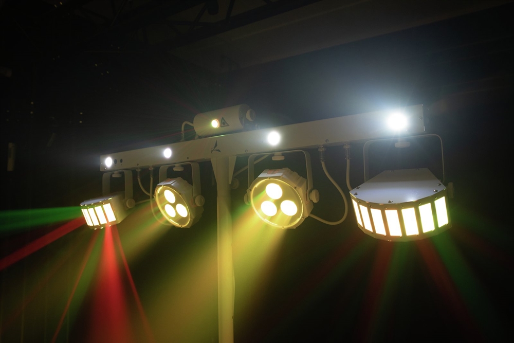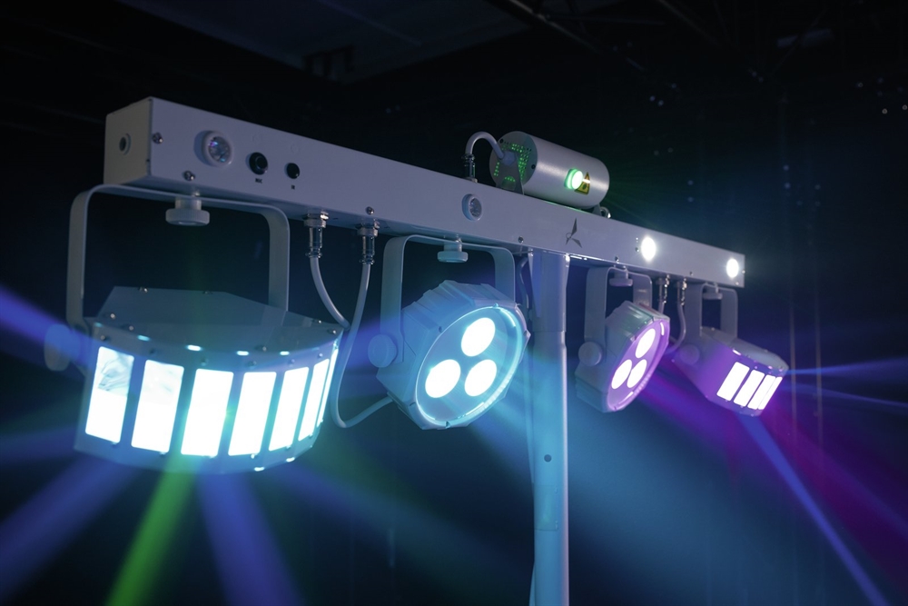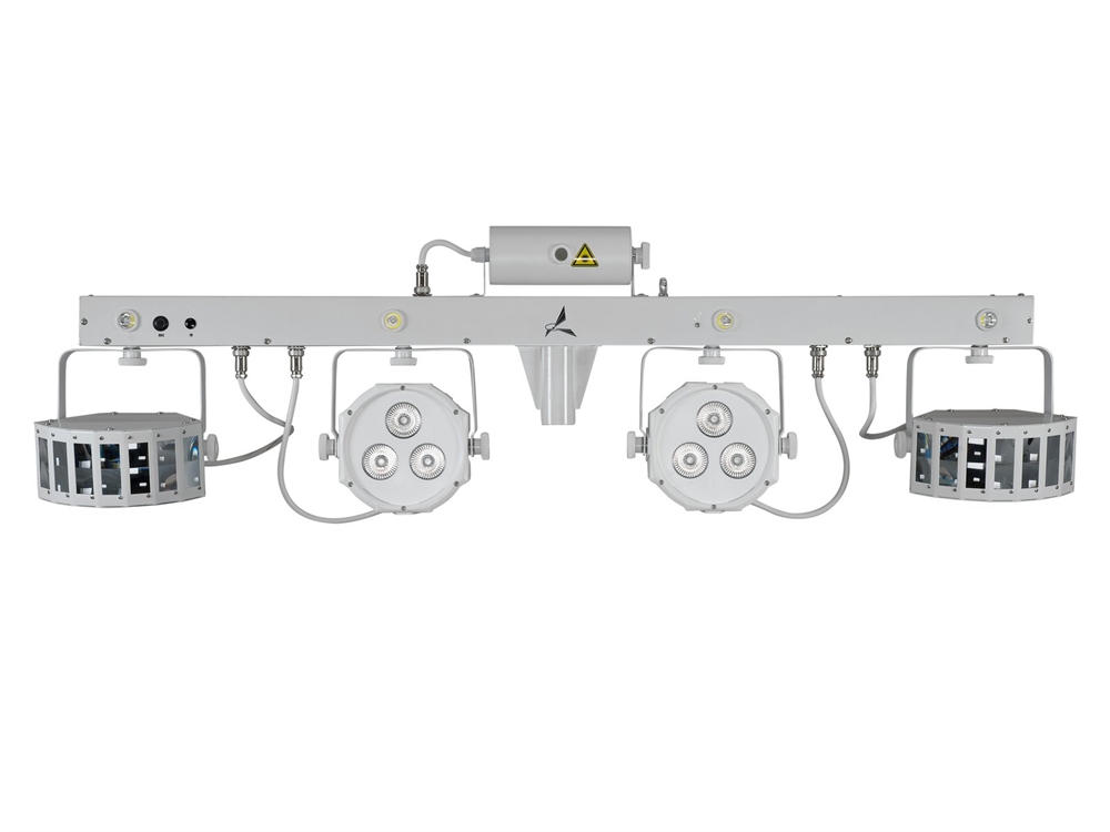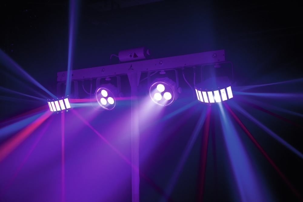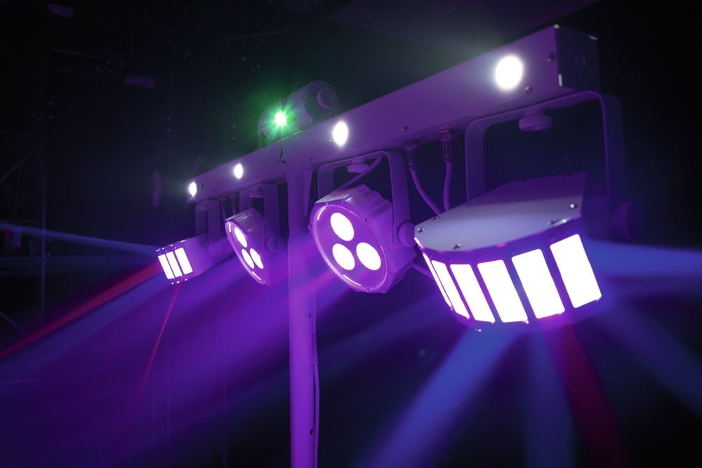 | Control: | Wireless footswitch (provided); IR remote control (provided); DMX; Master/slave function; Light´J; EASY SHOW; LED PC-Control 512; Sound to light via Microphone; W-DMX by wireless solution via USB (optional); QuickDMX via USB (optional); CRMX by LumenRadio via USB (optional) |