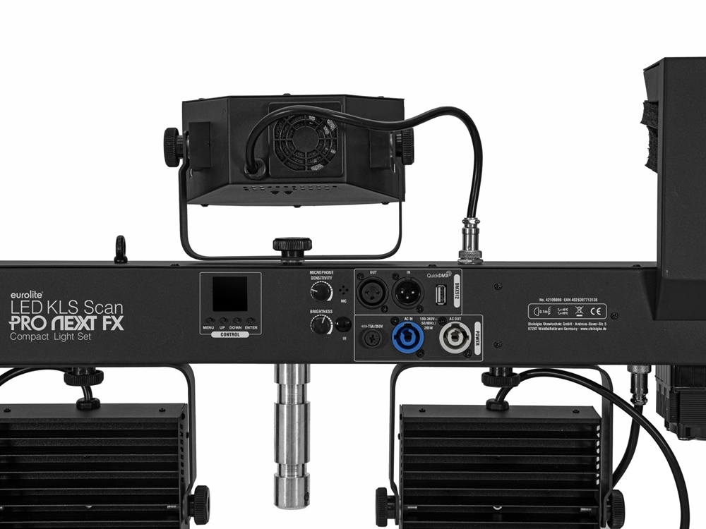 | Control: | Stand-alone; Sound to light via Microphone; Master/slave function; IR remote control; DMX; QuickDMX via USB (optional); W-DMX by wireless solution via USB (optional); CRMX by LumenRadio via USB (optional); Wireless footswitch (optional); Quick select potentiometer for brightness; EASY SHOW 2; EASY SHOW 3 |