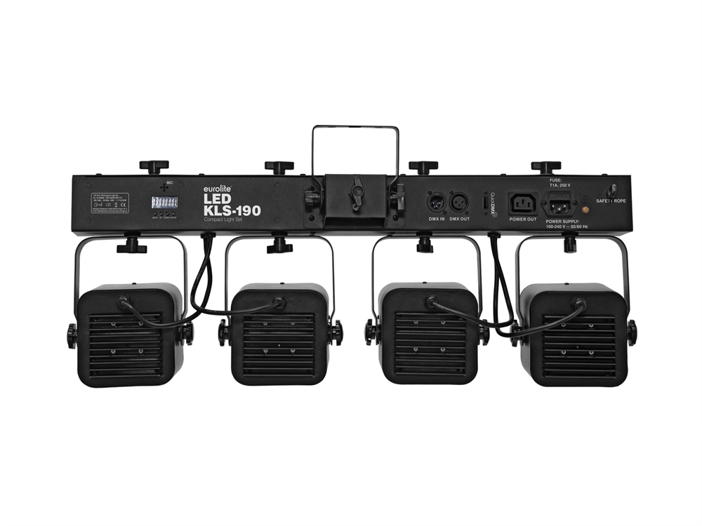 Her er du: Disconetto » LYS » Lyseffekter » DJ Lyseffekter » Komplette Lyseffekt bomme Eurolite LED KLS-190 Compact Light Set På lager På lager, 3-5 hverdage Bedømmelse for Eurolite LED KLS-190 Compact Light SetProduktet er endnu ikke bedømt 4.099,00DKK ved 1 stk. Vis uden moms Trustpilot Bar with 4 RGB spots, 4 white strobe LEDs and a QuickDMX USB port Bar with 4 RGB spots, 4 white strobe LEDs and a QuickDMX USB portCrossbar with integrated DMX control unit and stand sleeveUltra-light, ideally suited for mobile useSuited for installation on a speaker stand (not included) or trussComes pre-assembled with practical transport bagOne high-power 3in1 LED per spot provides for an exquisite RGB color mixStrobe effect with 4 cold white 3 W LEDs2 diffuser cover kits (9° and 42°) for a softer light with varying beam angles included in deliveryMovable and tiltable spotlightsVia DMX, each spot can be individually controlledAuto, music, master/slave and DMX mode19 professionally designed integrated show programs in auto and music modeDirect color selection for 18 preset colorsStepless color blend, color change, color fade, dimmer and strobe effectSound-control via built-in microphone, microphone sensitivity adjustableSupports QuickDMX - the wireless DMX system from EuroliteBuilt-in phantom-powered USB port for QuickDMX receivers (accessories)DMX512 control via any commercial DMX controller4, 6, 7, 9, 13 or 16 DMX channels selectableFlicker-free projectionAddressing and setting via control panel with 4-digit LED displayAdditional controlling possibility via the EUROLITE IR-7 remote control, included in deliveryBlack lacquered metal version with movable mounting bracketConvection cooling entirely via cooling ribs, no fans, particularly quiet during operationFeed-through output allows to power up to 8 devicesReady for connection via IEC power cord with safety plugLED: 4 x 30 W RGBLED: 4 x high-power 3 W CWControl: QuickDMX viaUSB (optional); DMX; Sound to light viaMicrophone; IR remote control includedStrobe color: WhiteEffect: Strobe effect Power supply:110-240 V AC, 50/60 HzPower consumption:60 WLED:4 x 30 W RGB4 x high-power 3 W CWDMX channels:4; 6; 7; 9; 13; 16DMX input:1 x 3-pin XLR (M) mounting versionDMX output:1 x 3-pin XLR (F) mounting versionIP classification:IP20Cooling fan:No, cooling by convectionControl:QuickDMX via USB (optional)DMXSound to light via MicrophoneIR remote control includedBeam angle:9°42°Case color:BlackWidth:66,0 cmHeight:26,5 cmDepth:15,0 cmWeight:6,29 kgLegal specificationsEcodesign regulation:YesSpecial product:Not designed for household room illuminationPurpose:Show effect lighting Varenr.: E-42109608 Vi anbefaler Højttalerstativ. 140-345 cm. Max. 18 Kg. DKK 609,00549,00 Eurolite Diffuser Cover Kit 9° (4 pcs) DKK 309,00 Eurolite QuickDMX USB Wireless Transmitter/Receiver DKK 509,00 Sikkerheds wire A 4x1000mm Op til 15kg DKK 79,00 FUTURELIGHT WDR USB Wireless DMX Receiver DKK 819,00 Eurolite DMX LED Color Chief Controller DKK 2.039,00 IEC LOCK IEC Extension locking 3x1.0 3m bk DKK 199,00 IEC LOCK IEC Power Cable locking 3x1.0 3m bk DKK 109,00