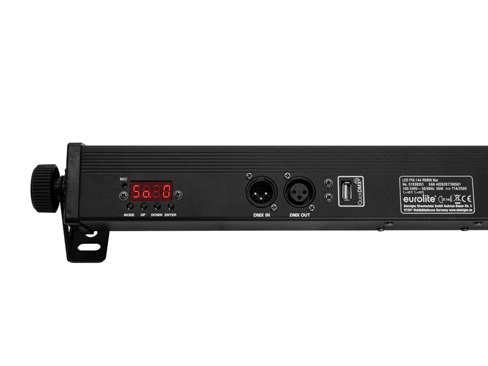 | Control: | Stand-alone; Master/slave function; Sound to light via Microphone; DMX; QuickDMX via USB (optional); W-DMX by wireless solution via USB (optional); CRMX by LumenRadio via USB (optional); Light Captain |
