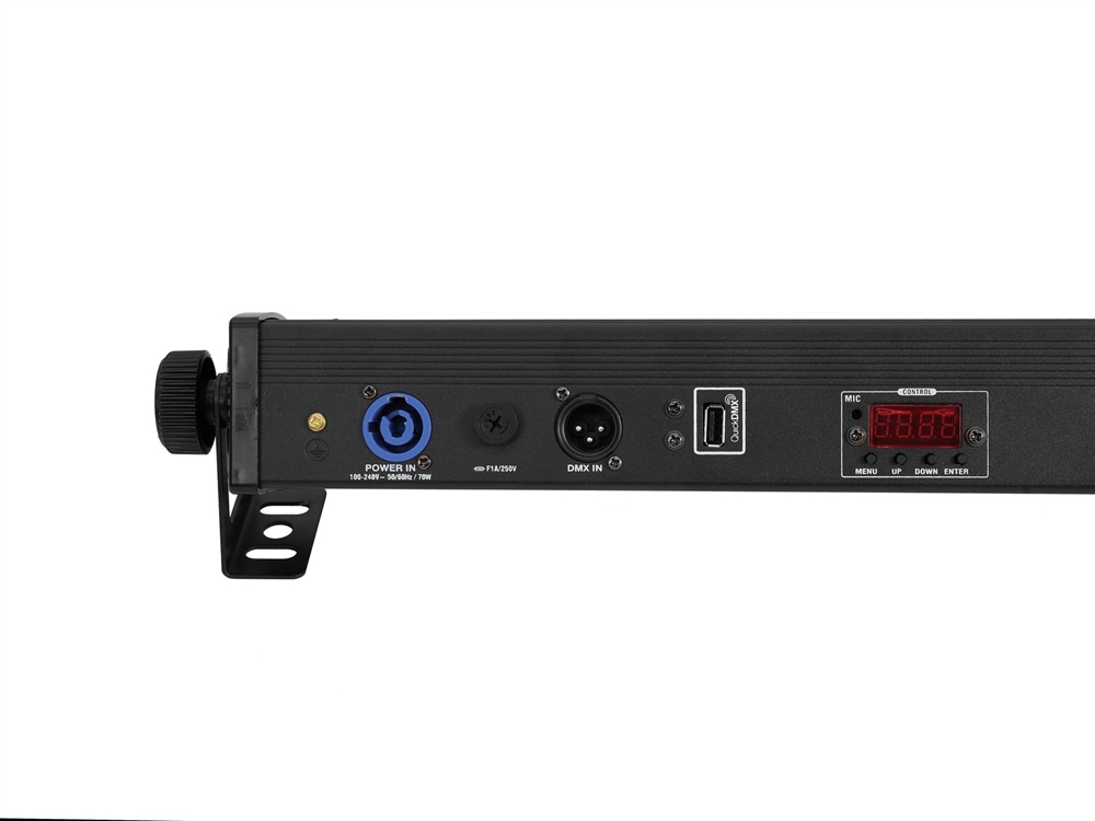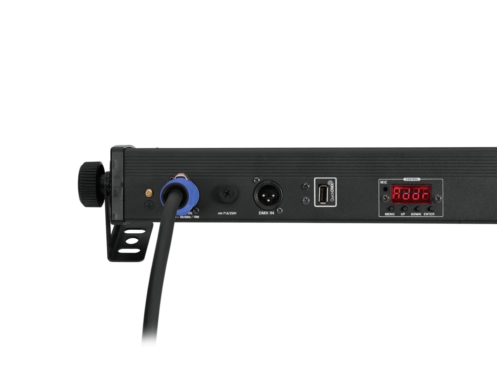 | Control: | Stand-alone; Master/slave function; DMX; QuickDMX via USB (optional); W-DMX by wireless solution via USB (optional); CRMX by LumenRadio via USB (optional); Sound to light via Microphone; IR remote control |
