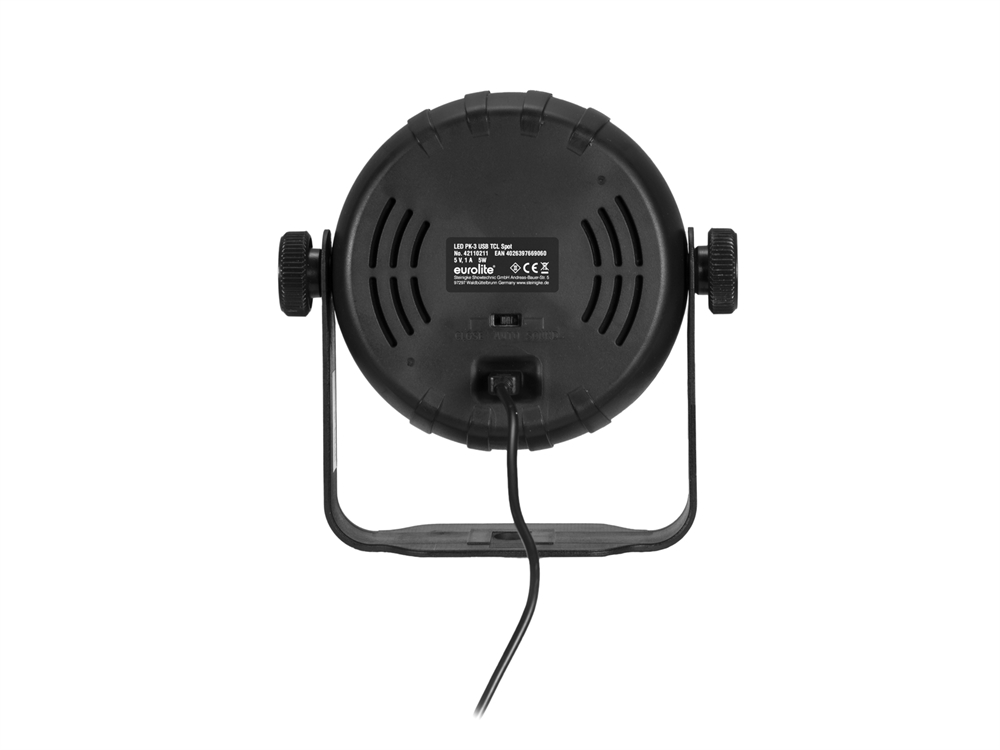 Mobile, colorful & quietSimply brilliant: With its six bright LEDs, the small PK-3 spot paints your party room in vibrant colors, either fully automatically or to the rhythm of the music. With the supplied IR remote control you can select one of 3 preset show programs as well as the basic colors red, green and blue plus 7 great mixed colors. Brightness, running speed and microphone sensitivity can be easily adjusted as well.The device is ready to use, works without a fan and thanks to modern LED technology, it is also particularly energy-saving. But there is more! You can hook up your powerbank to the USB port and take the PK-3 with you and set it up wherever you want. And of course, the device is delivered ready for connection and with a practical carrying handle - all you have to do is unpack and switch it on!