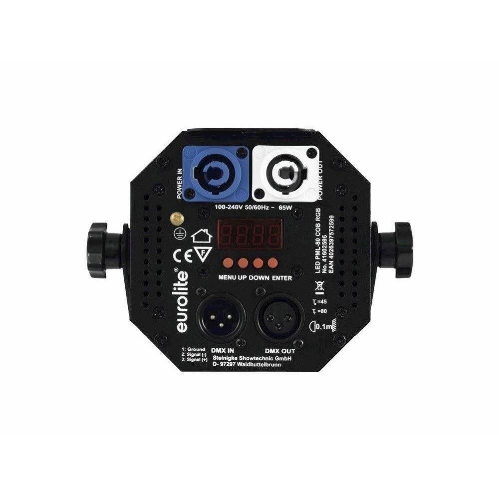 Her er du: Disconetto » LYS » Lamper og Belysning » Indendørs LED Lamper » Flere farvet LED lamper Eurolite LED PML-80 COB RGB 80W Spot/Wash På lager På lager, 3-5 hverdage Bedømmelse for Eurolite LED PML-80 COB RGB 80W Spot/WashProduktet er endnu ikke bedømt Før 2.559,001.689,00DKK ved 1 stk. Vis uden moms Trustpilot Spotlight with 80 W COB LED (RGB), beam angle 16°/36° (lens)Different beam angles (from approx. 16° to approx. 36°) possible via additional lens (included with delivery)Equipped with an 80 W COB LED with RGB colorsFlicker-free projectionDMX-controlled operation or stand-alone operation with Master/Slave function3, 5, 6, 7 or 8 DMX channels selectableFunctions: static colors; automatic color changes, stepless RGB color mixture, dimmer, strobe effect with variable speed, sound-controlDimmer speed (step response) adjustableIn color change operation suitable for continuous useCompact housing in a beautiful designConvection cooling entirely via cooling ribs, no fans, particularly quiet during operationIdeal as floor spot via additional bracketLocking possibility at the bracketsAddressing via control panel with 4-digit LED displaySwitch-mode power supply for operation between 100 and 240 voltsPower connection via P-Con jack and included power cable with safety plugFeed-through output allows to power up to 8 devicesDMX control via any standard DMX controllerColor generation: RGB Power supply:100-240 V AC, 50/60 HzDMX channels:3/5/6/7/8DMX connection:3-pin XLRSound-control:via built-in microphoneLED number:1LED type:80 W COB, RGBBeam angle:16°/36°Dimensions (L x W x H):175 x 169 x 257 mmBeam angle:16 °Beam angle:36 °Cooling fan:No, cooling by convectionIP classification:IP20Weight:2 kgLamp type:LED lampPower consumption:65 WHeight:16,9 cmDepths:25,7 cmWidth:17,5 cmEcodesign regulation:YesSpecial product:Not designed for household room illuminationPurpose:Show effect lighting Varenr.: E-41602595 Vi anbefaler Eurolite Combi Cable DMX P-Con/3pin XLR 1,5m DKK 309,00 Sikkerheds wire A 3x600mm Op til 5kg DKK 59,00 Sikkerheds wire AG-5 3x600mm Op til 5kg DKK 69,00 Eurolite EASY Show DKK 2.449,002.109,00