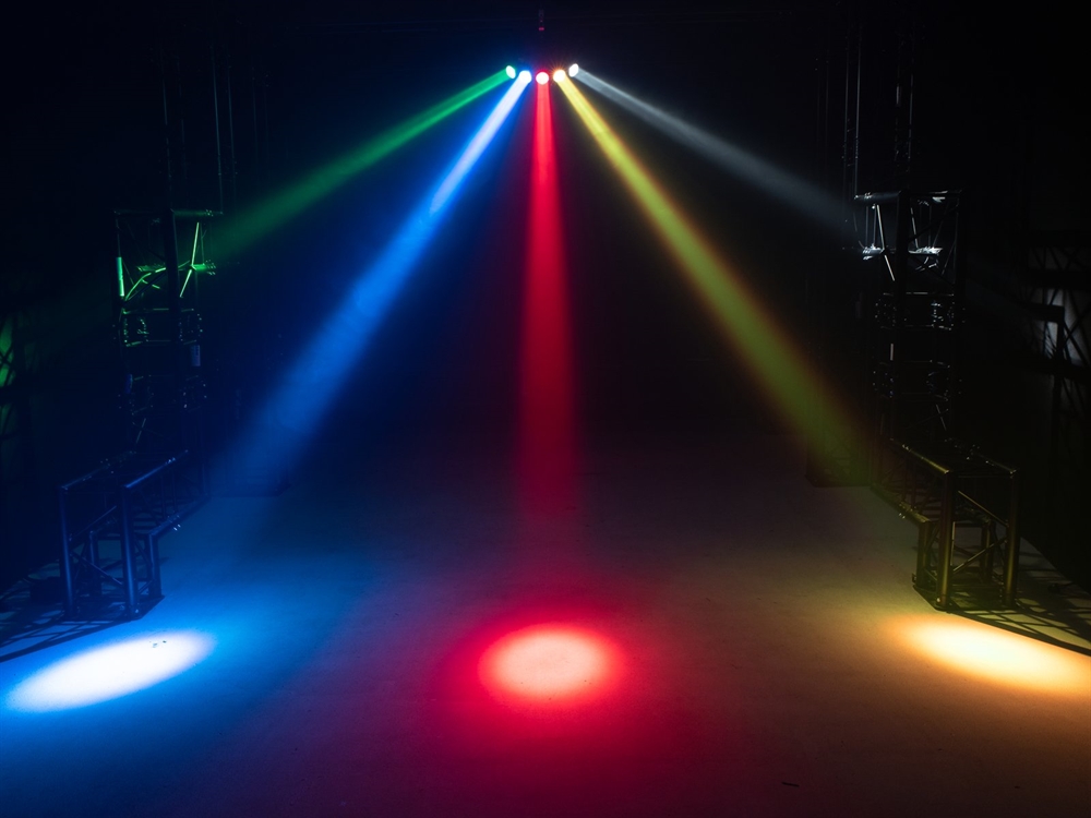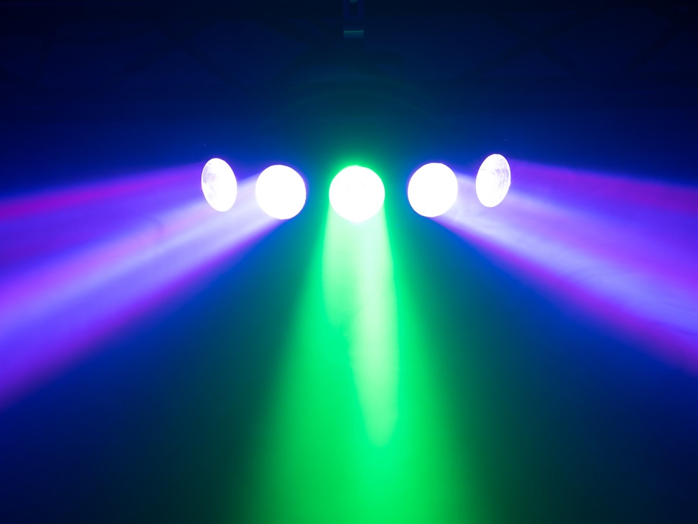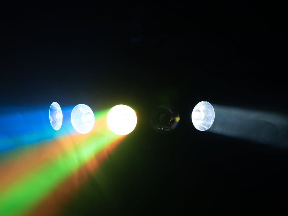 5 x COB (chip-on-board) 15 W 4in1 QCL RGBW (homogen farveblanding)
