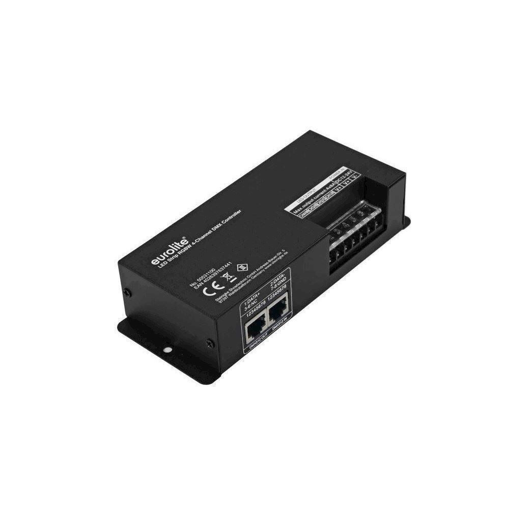 Her er du: Disconetto » LYS » Special lys » LED Strips » LED Driver Eurolite LED Strip RGBW 4-Channel DMX Controller På lager På lager, 3-5 hverdage Bedømmelse for Eurolite LED Strip RGBW 4-Channel DMX ControllerProduktet er endnu ikke bedømt 459,00DKK ved 1 stk. Vis uden moms Trustpilot 4-channel LED controller with DMX interface for RGB LEDs 12-24 VCompact LED controller for controlling RGB LEDs (12-24 V) via DMXConverts standard DMX512 signals to PWM signals e.g. for driving LED strips4 separate control channels for individual color mixing of red, green, blue and white LEDsBuilt-in programs enable stand-alone operation (individual color selection, color change, color fade, running speed)DMX addressing and settings via DIP switchesPlug-in screw terminals for connecting the LEDs and the power supplyRJ45 jacks for serial connectionRugged black metal housing Power supply:12-24 V DCStandby current:<1 WOutput power: max. 288 W (12 V), 576 W (24 V)Output current:max. 6 A per channel (24 A total)DMX channels:4DMX connection:screw terminals and RJ45Dimensions (L x W x H):164 x 66 x 38 mmWeight:300 gEcodesign regulation:Yes Varenr.: E-50531100 Vi anbefaler Eurolite LED Strips 300 5m 3528 2700K 12V DKK 259,00 Eurolite LED Strips 300 5m 3528 UV 24V DKK 409,00 Eurolite LED Strips 300 5m RGBWW 24V DKK 819,00 Kunder købte også Eurolite sæt: QuickDMX 1x transmitter + 2 x receiver DKK 2.039,00 Eurolite LED Strip Connector 5Pin 12mm DKK 29,00 Eurolite LED Strips 300 5m RGBWW 24V DKK 819,00