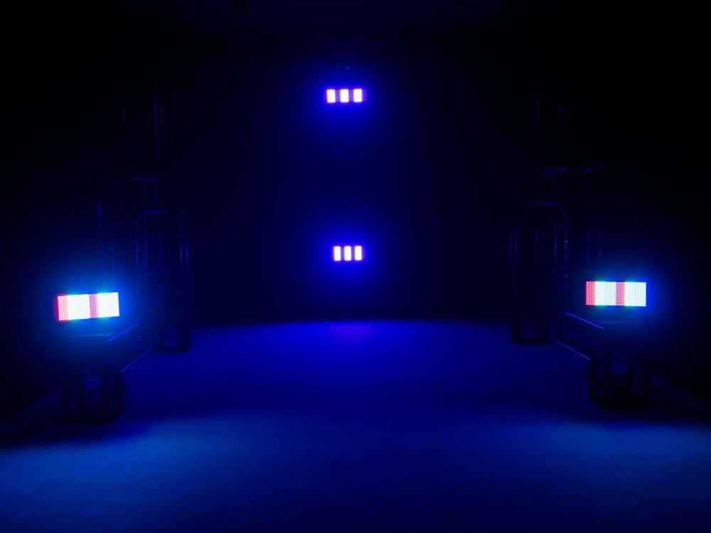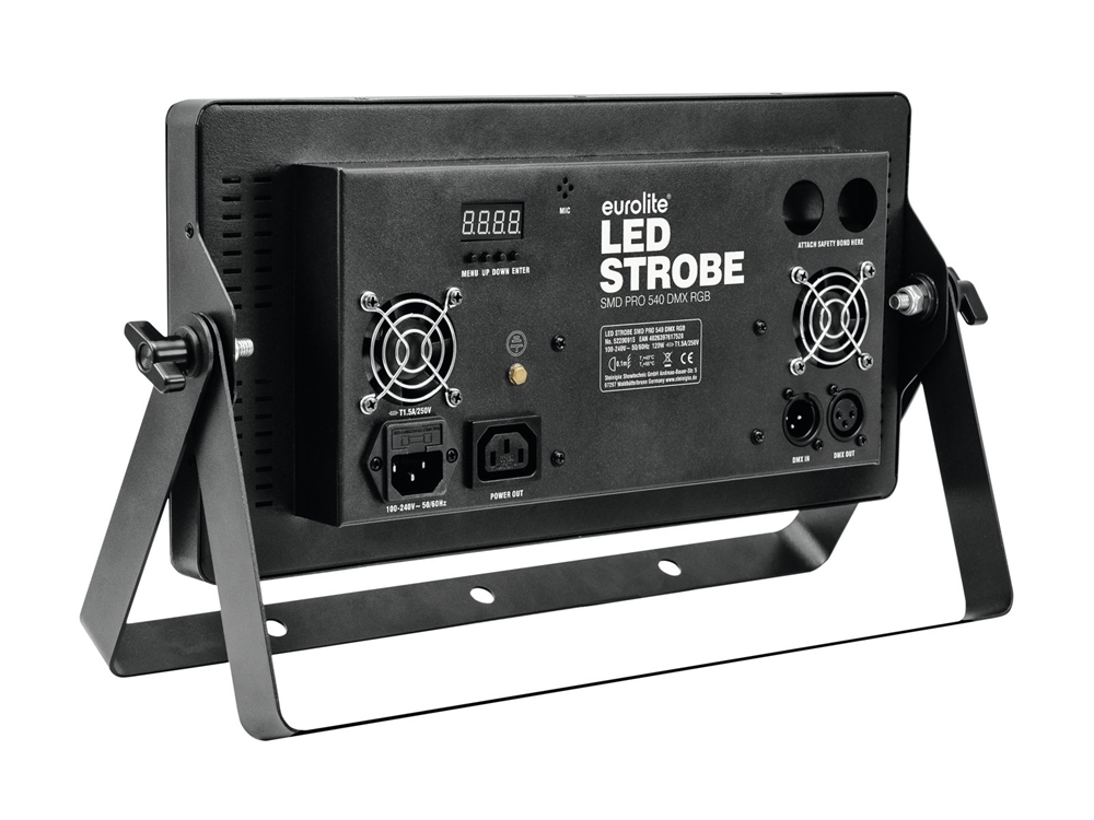 The LED Strobe SMD PRO 540 DMX RGB combines three functions in one fixture: It is equipped with 540 bright RGB SMD LEDs for both dynamic strobe effects and slower blinder effects.
