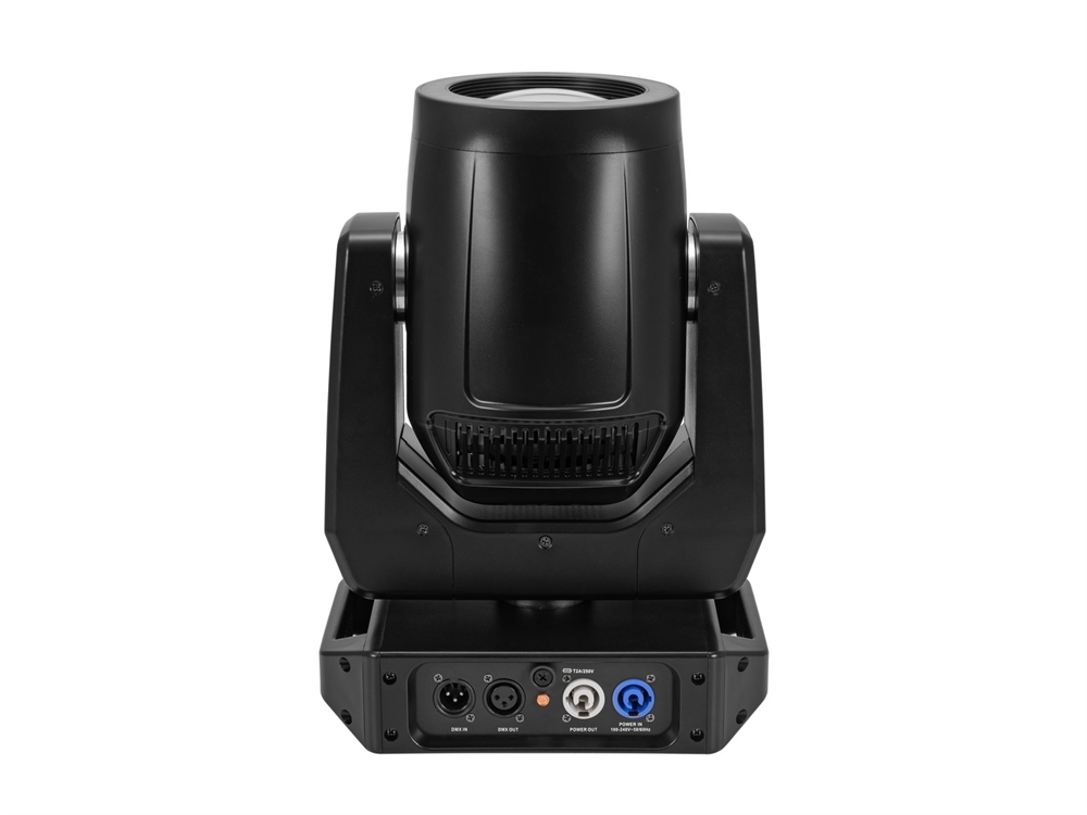 | Udstyr: | Farvehjul; Gobo hjul med statiske gobos; fokus motor-drevet; Frost filter; 8-fold prismen roterer |