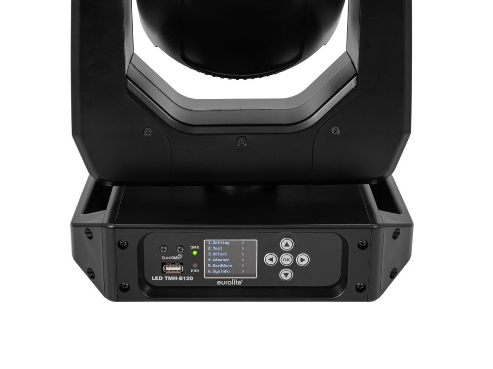 | Kontrol: | Stand-alone; lyd til lys via mikrofon; DMX; QuickDMX via USB (valgfrit); CRMX af LumenRadio via USB (valgfrit); W-DMX af wireless løsning via USB (valgfrit); master/slave funktion |